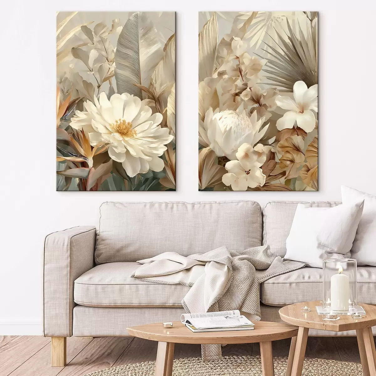 Drei Materialtypen stehen zur Verfügung: Economic Canvas - ein dichtes und haltbares Material für den Digitaldruck, identisch mit Malerleinwand, wasserfeste Oberfläche, realistische Wiedergabe von Details, mittelkörniges Material. Premium Canvas - die Textur ähnelt der einer Malerleinwand (verwobene kleine Fäden). Weiche, detaillierte Wiedergabe des Bildes auf einer matten Oberfläche. Eco-Premium - hochwertiges Gewebe aus 100% Baumwolle. Dank der natürlichen Baumwollfasern ist das Material langlebig und verschleißfest. Hervorragende Farbwiedergabe und Detailtreue.