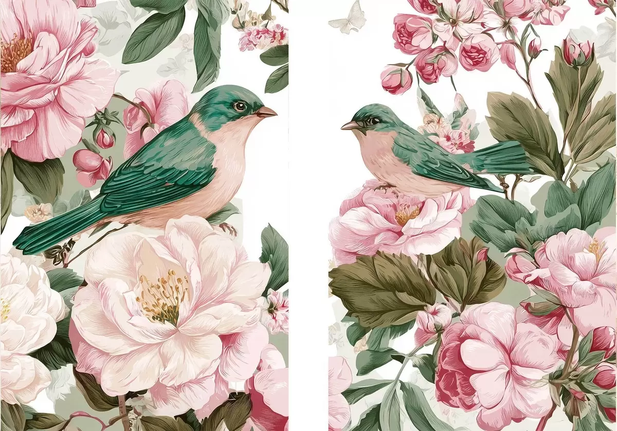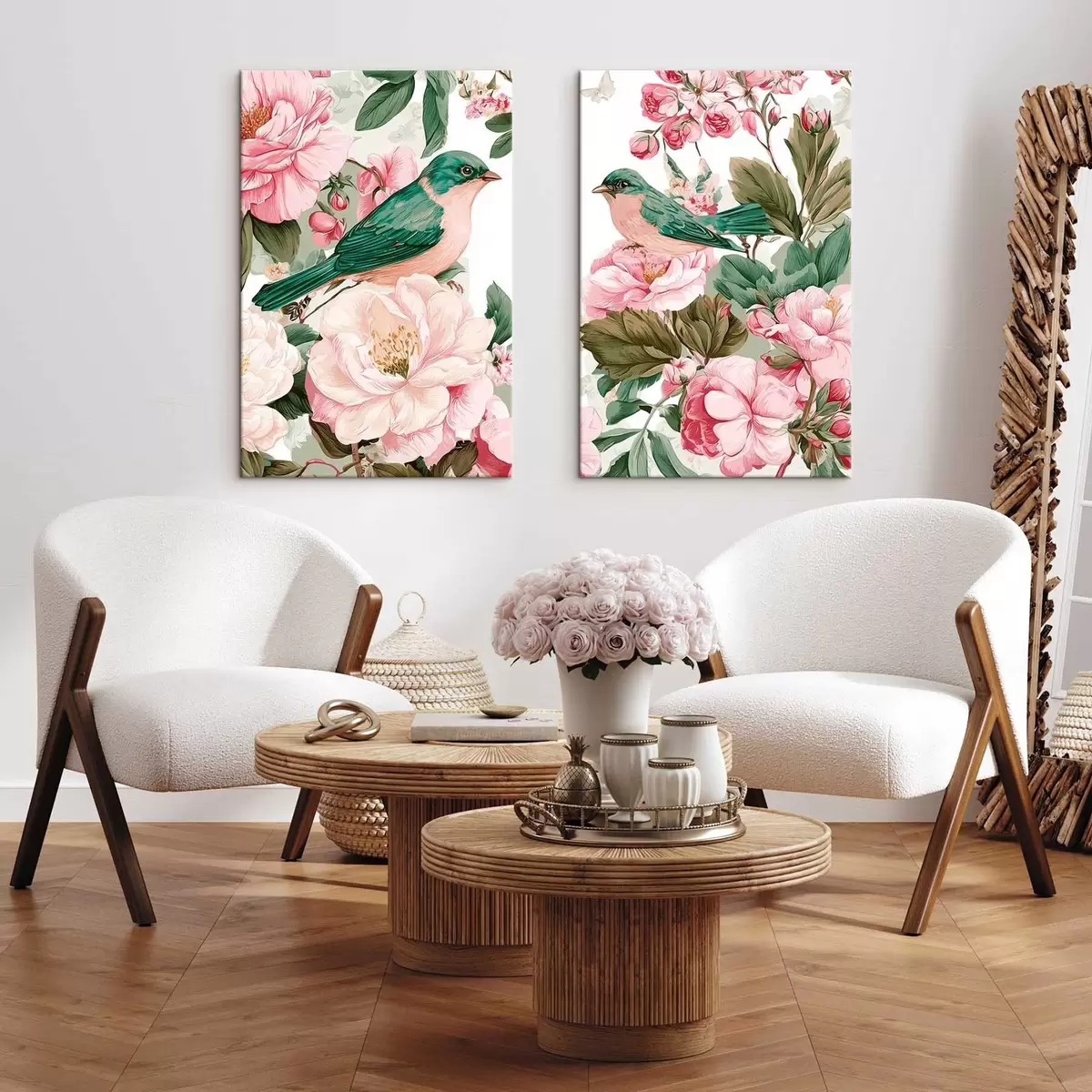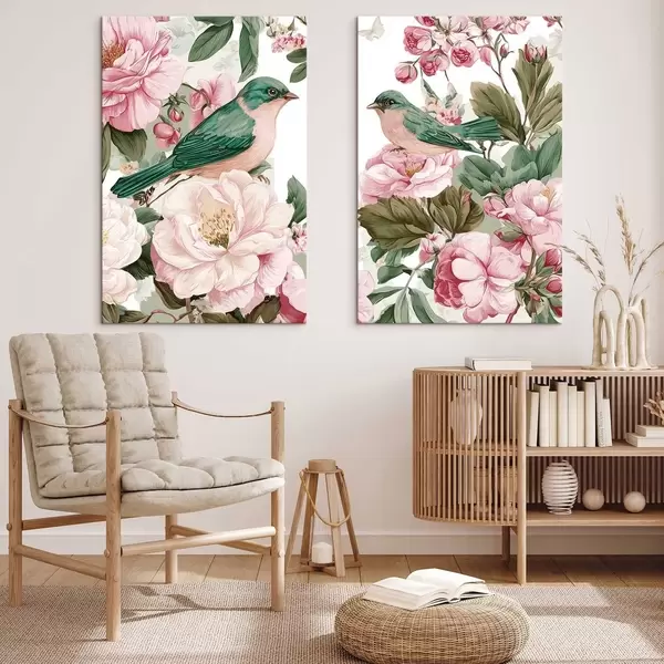 Gemälde Vögel auf zartrosa Blüten Art. m30386