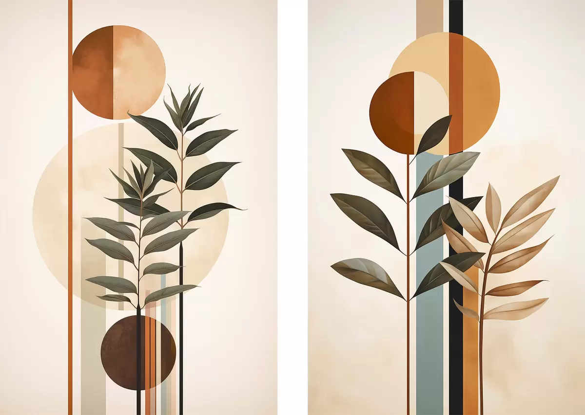 Fototapete Abstrakte Pflanzen mit Kreisen und Linien m30392
