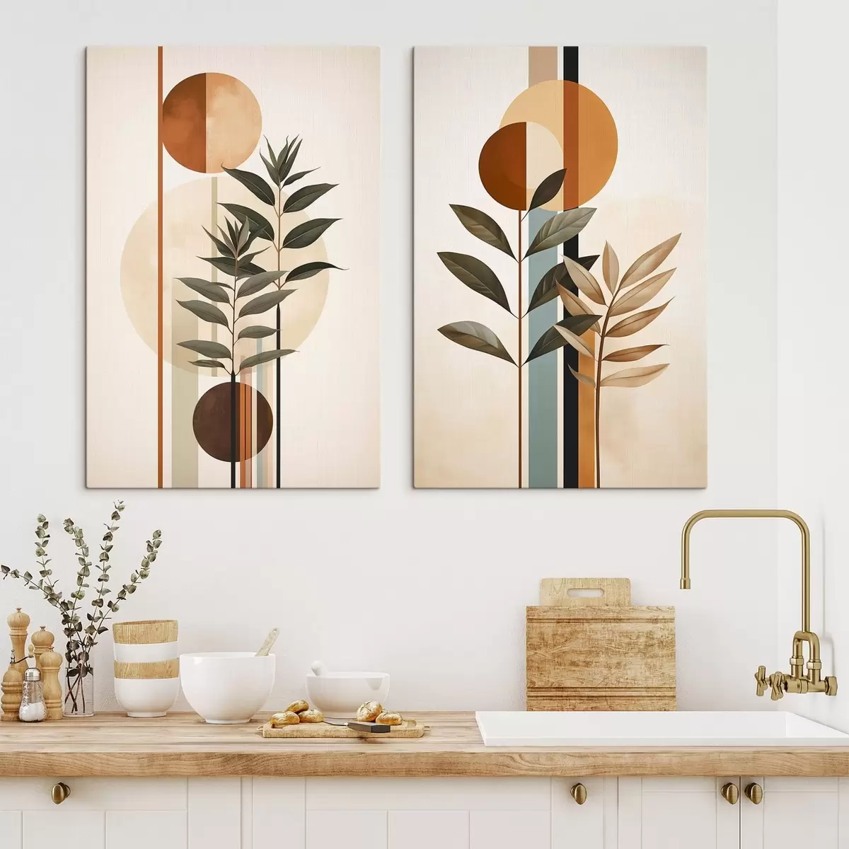 Gemälde Abstrakte Pflanzen mit Kreisen und Linien Art. m30392