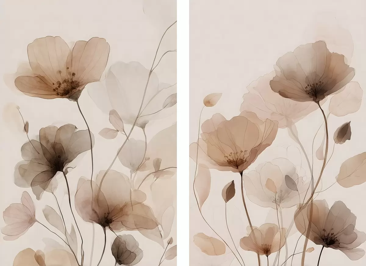 Fototapete Blumen in Aquarell in Brauntönen m30435