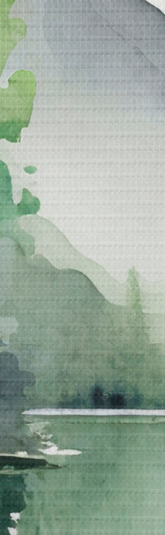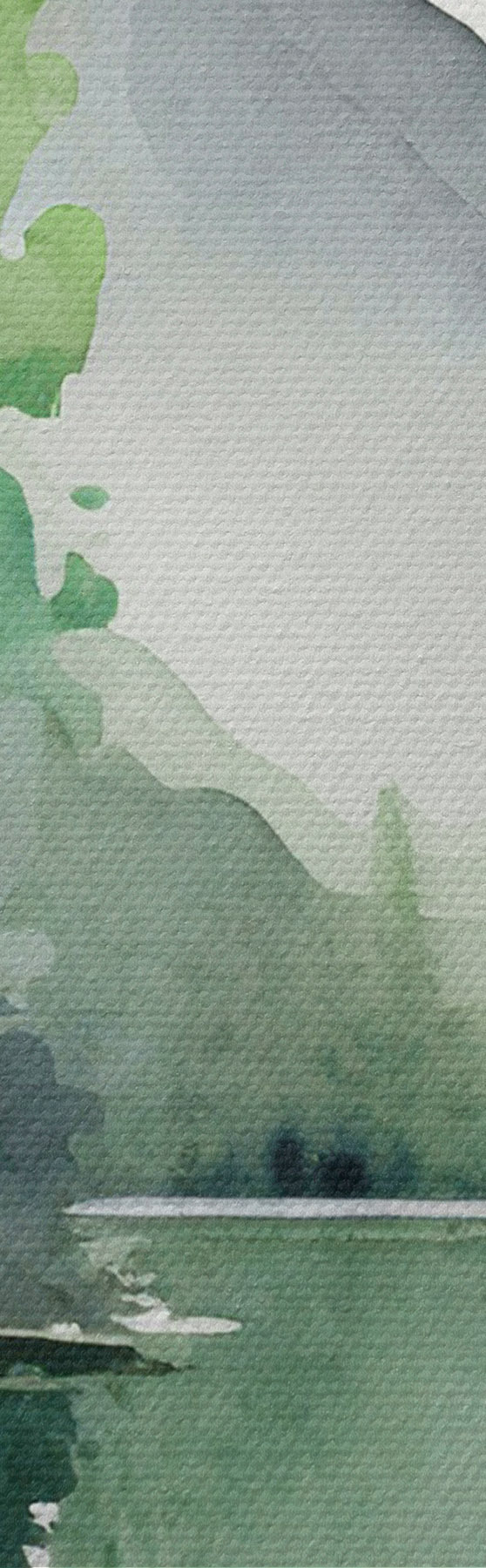 Fototapete Aquarell See und Waldlandschaft, Frühling, weiche natürliche grüne Farben s36503
