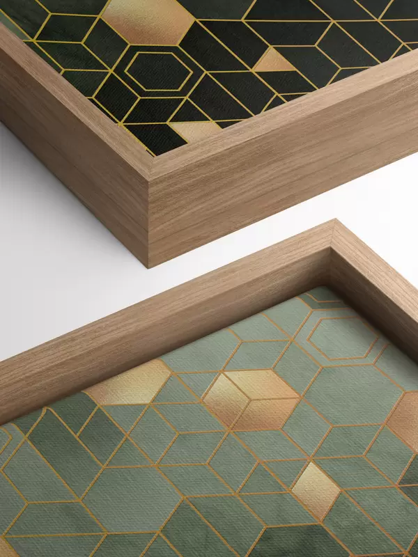 Fototapete Geometrische Eleganz in Smaragd und Bernstein s36602v2