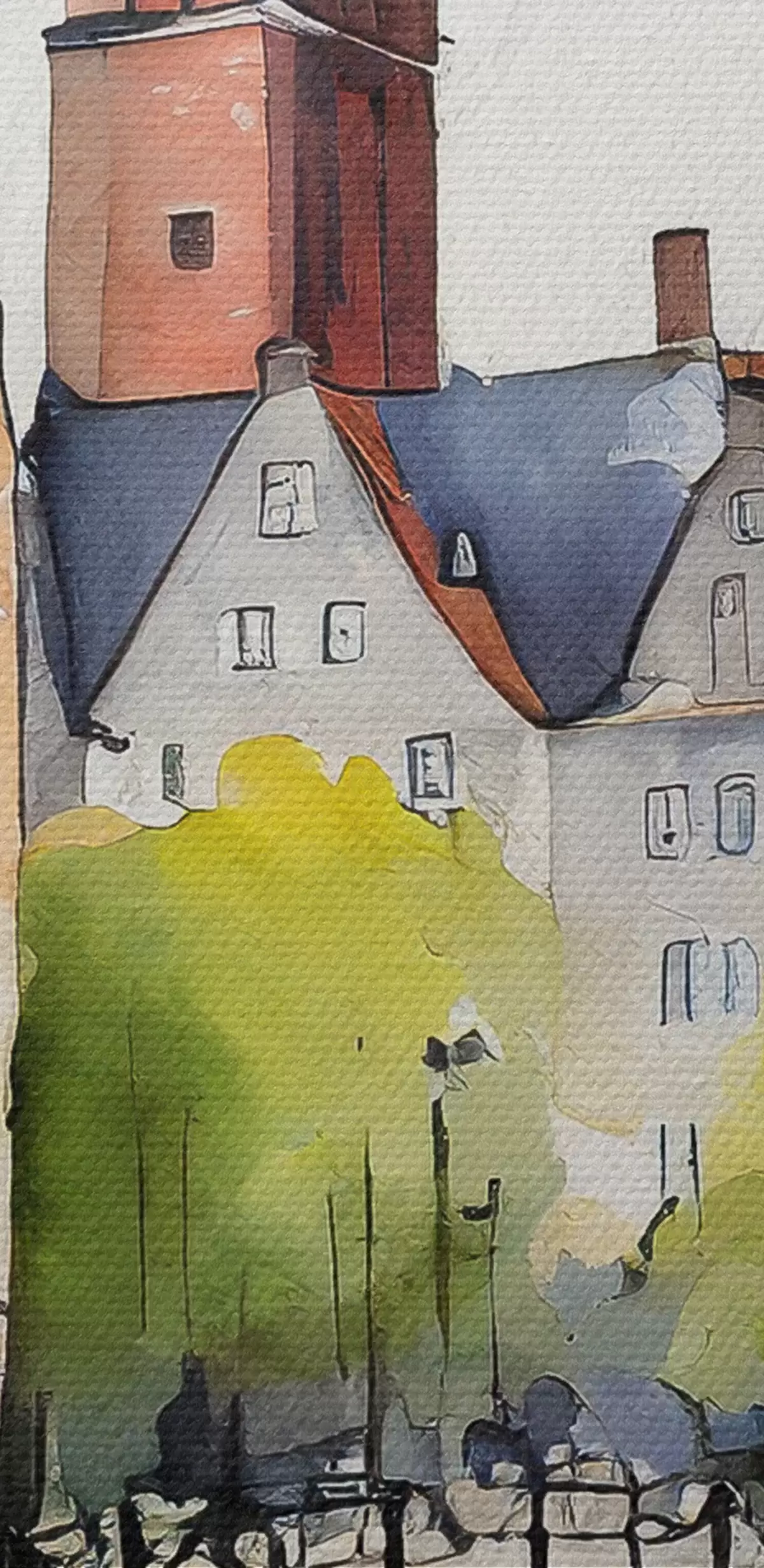 Gemälde Dänische Straßen, Aquarell, Architekturzeichnung Art. s36682