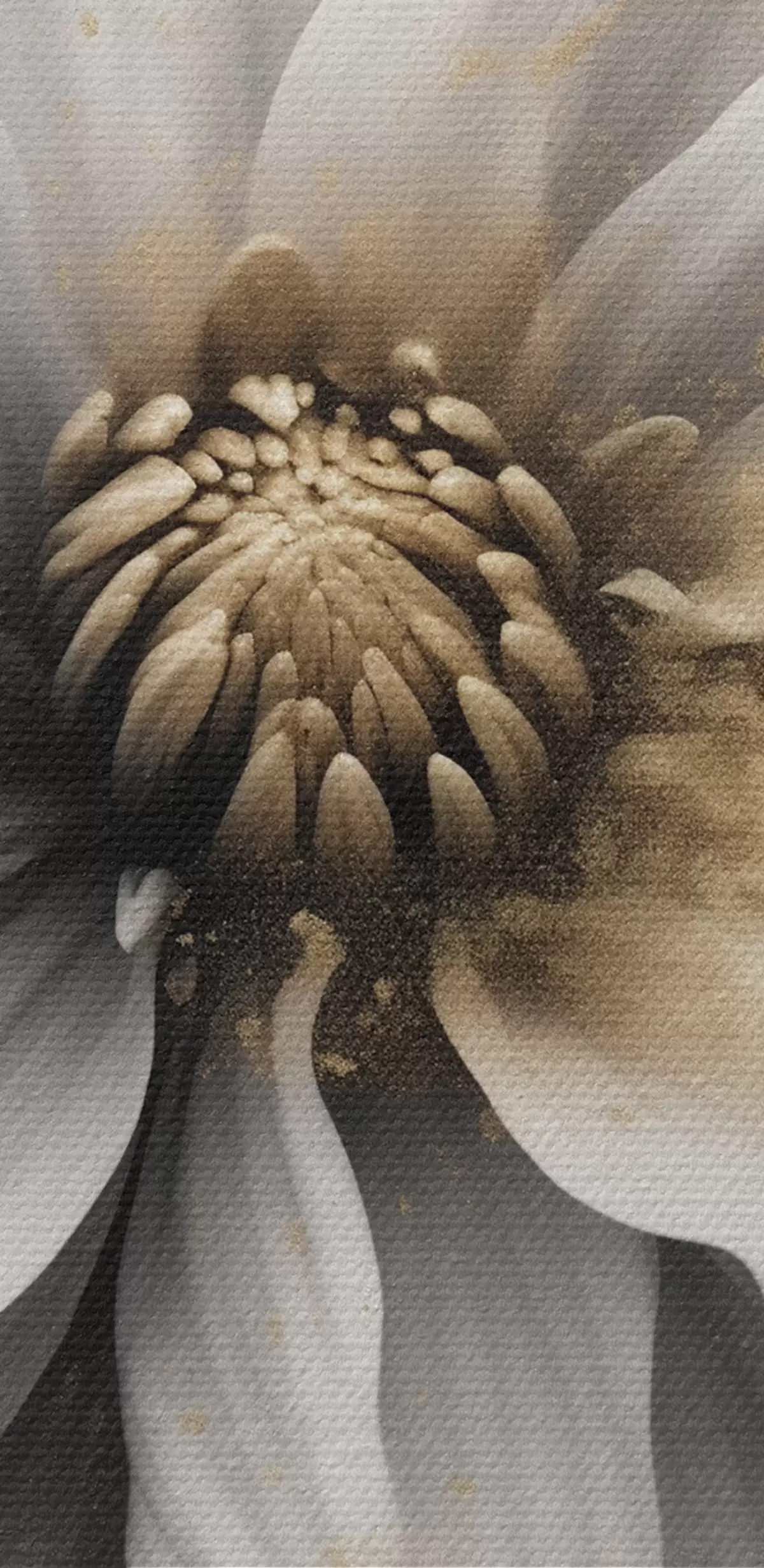 Das Bild kann vorsichtig mit einem trockenen, weichen Tuch oder Schwamm abgewischt werden; es wird nicht empfohlen, feuchte Produkte zu verwenden. Die Verwendung eines feuchten Schwamms ist nur zulässig, wenn das Bild lackiert wurde.