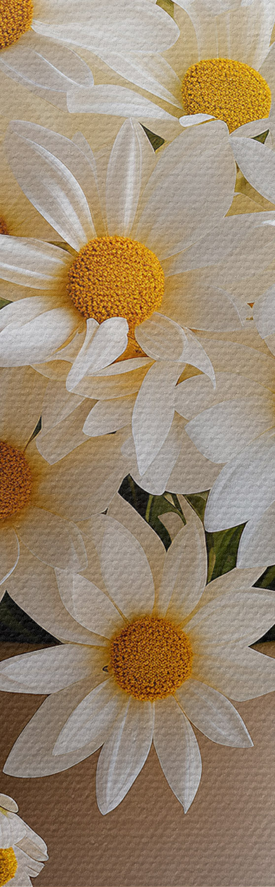 Drei Materialtypen stehen zur Verfügung: Economic Canvas - ein dichtes und haltbares Material für den Digitaldruck, identisch mit Malerleinwand, wasserfeste Oberfläche, realistische Wiedergabe von Details, mittelkörniges Material. Premium Canvas - die Textur ähnelt der einer Malerleinwand (verwobene kleine Fäden). Weiche, detaillierte Wiedergabe des Bildes auf einer matten Oberfläche. Eco-Premium - hochwertiges Gewebe aus 100% Baumwolle. Dank der natürlichen Baumwollfasern ist das Material langlebig und verschleißfest. Hervorragende Farbwiedergabe und Detailtreue.
