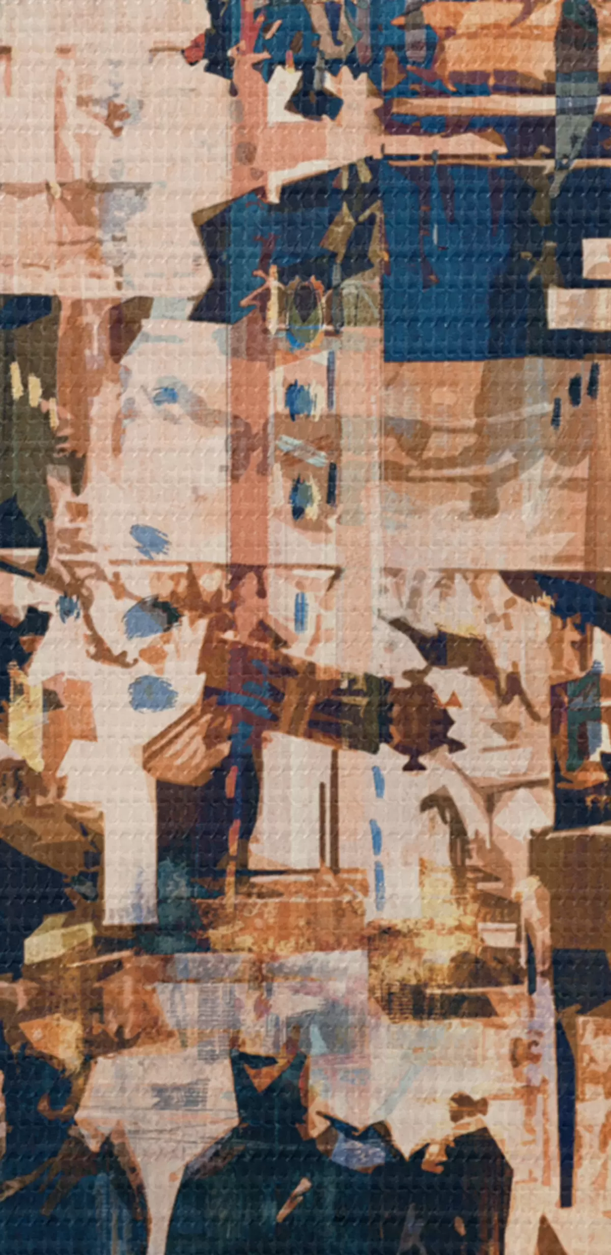 Um die Leinwand auf Keilrahmen zu spannen, ohne das Bild zu beschädigen, verwenden wir ein gespiegeltes Bild.