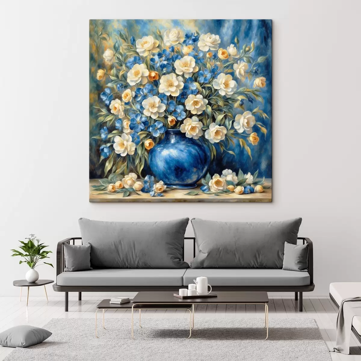 Gemälde Blauer Blumenstrauß im Stil von Auguste Renoir. Art. s37435