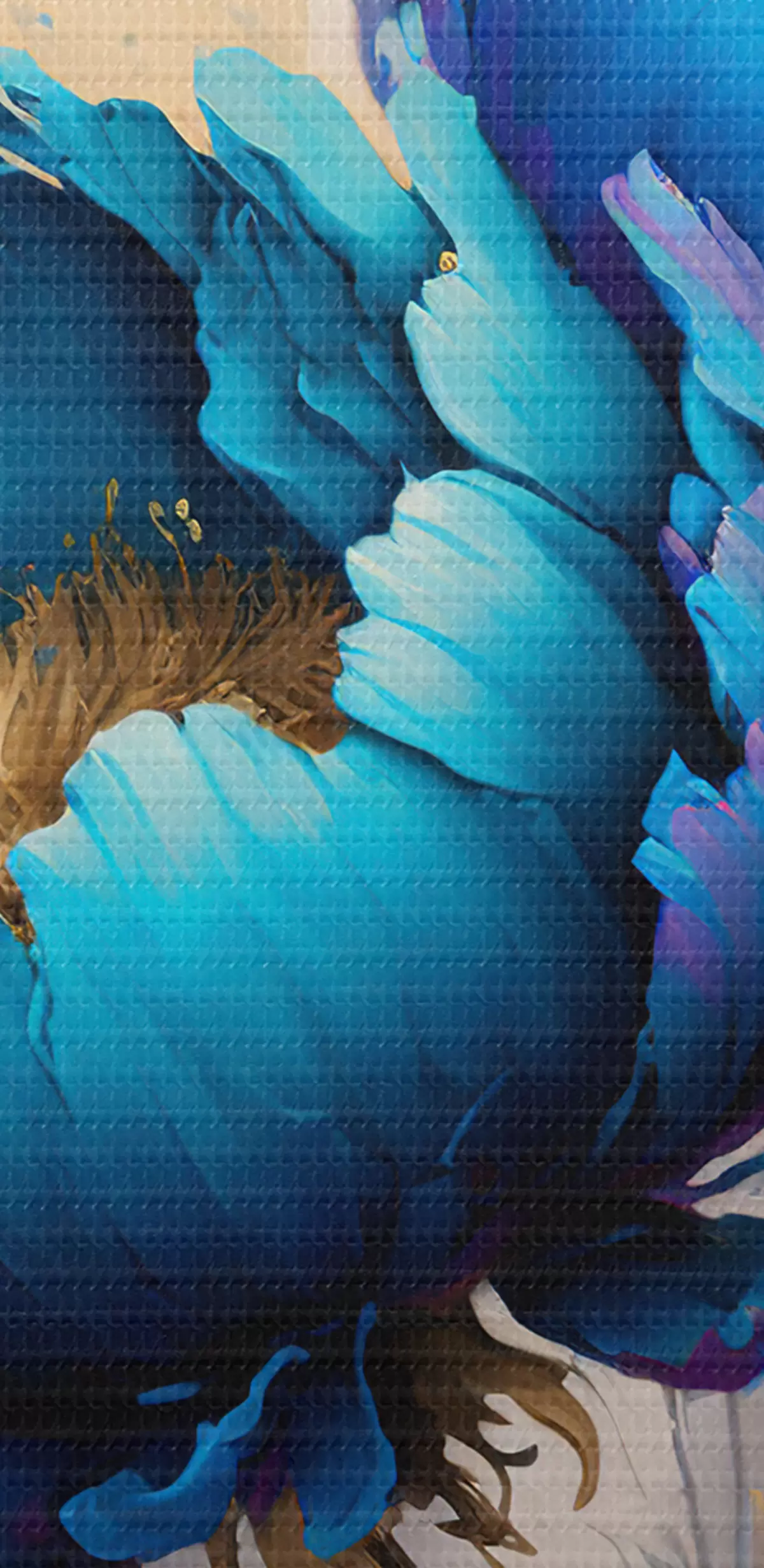 Drei Materialtypen stehen zur Verfügung: Economic Canvas - ein dichtes und haltbares Material für den Digitaldruck, identisch mit Malerleinwand, wasserfeste Oberfläche, realistische Wiedergabe von Details, mittelkörniges Material. Premium Canvas - die Textur ähnelt der einer Malerleinwand (verwobene kleine Fäden). Weiche, detaillierte Wiedergabe des Bildes auf einer matten Oberfläche. Eco-Premium - hochwertiges Gewebe aus 100% Baumwolle. Dank der natürlichen Baumwollfasern ist das Material langlebig und verschleißfest. Hervorragende Farbwiedergabe und Detailtreue.