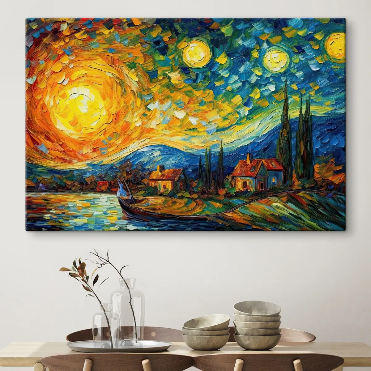 Das Gemälde kann sofort nach Erhalt aufgehängt werden. Das Gemälde wird auf einen 2 cm breiten Holzkeilrahmen aufgespannt.