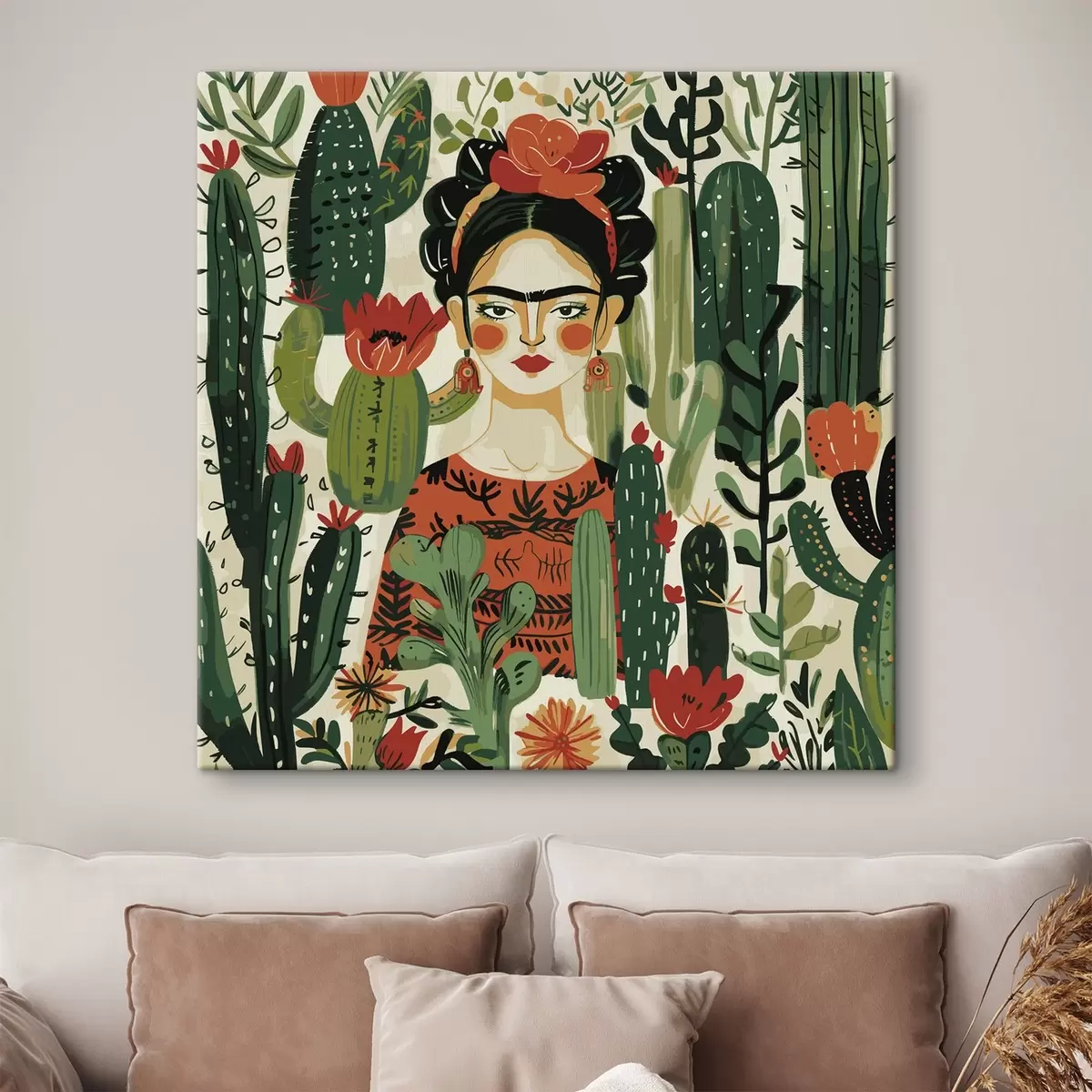 Gemälde Frida im grünen Stil in Kakteen Art. s38378