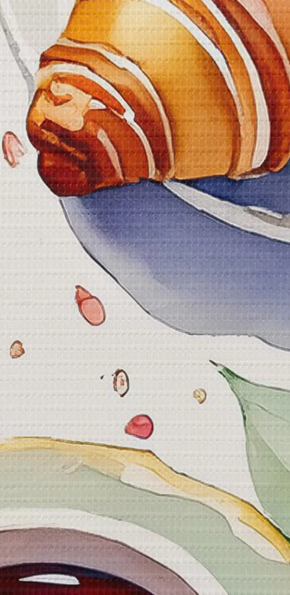 Gemälde Croissant Aquarell, Tasse Tee, Frühstück, Zitronen, rustikaler Stil Art. s38389