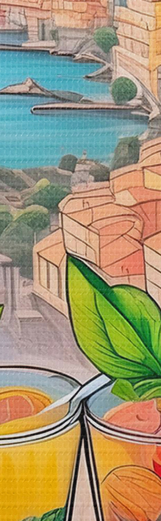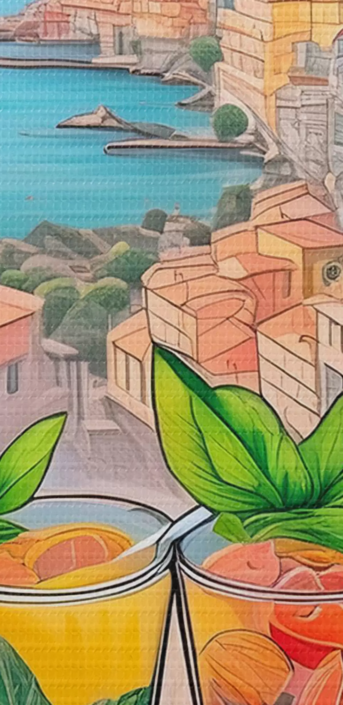 Fototapete Italienische Stadt, Meeresküste, Cocktails, Berufung, Architektur, Sommer, Aquarell  s38392