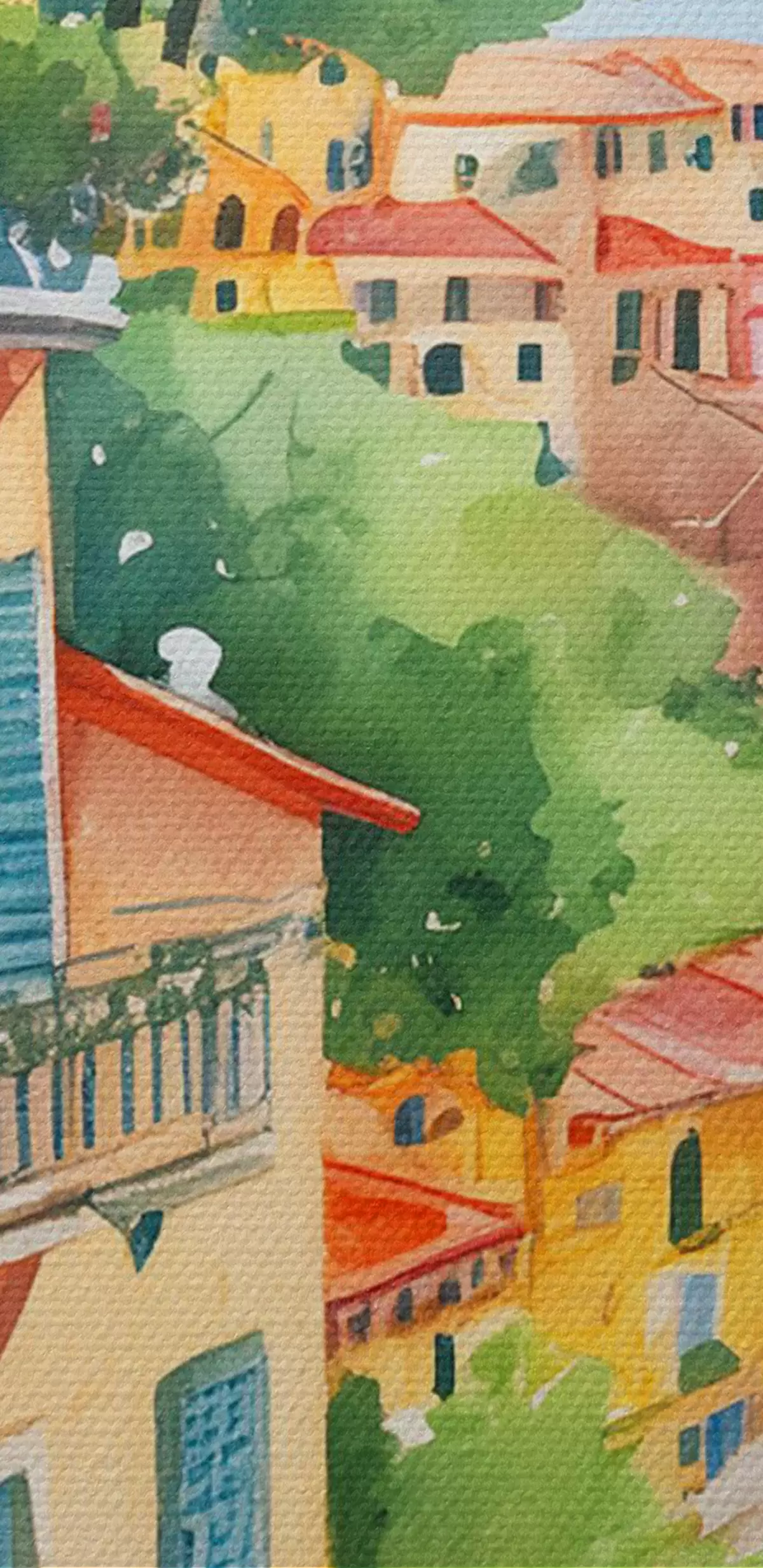 Gemälde Italienische Stadtarchitektur, Amalfiküste, Sommer, Aquarell, Zitronenbaum Art. s38393