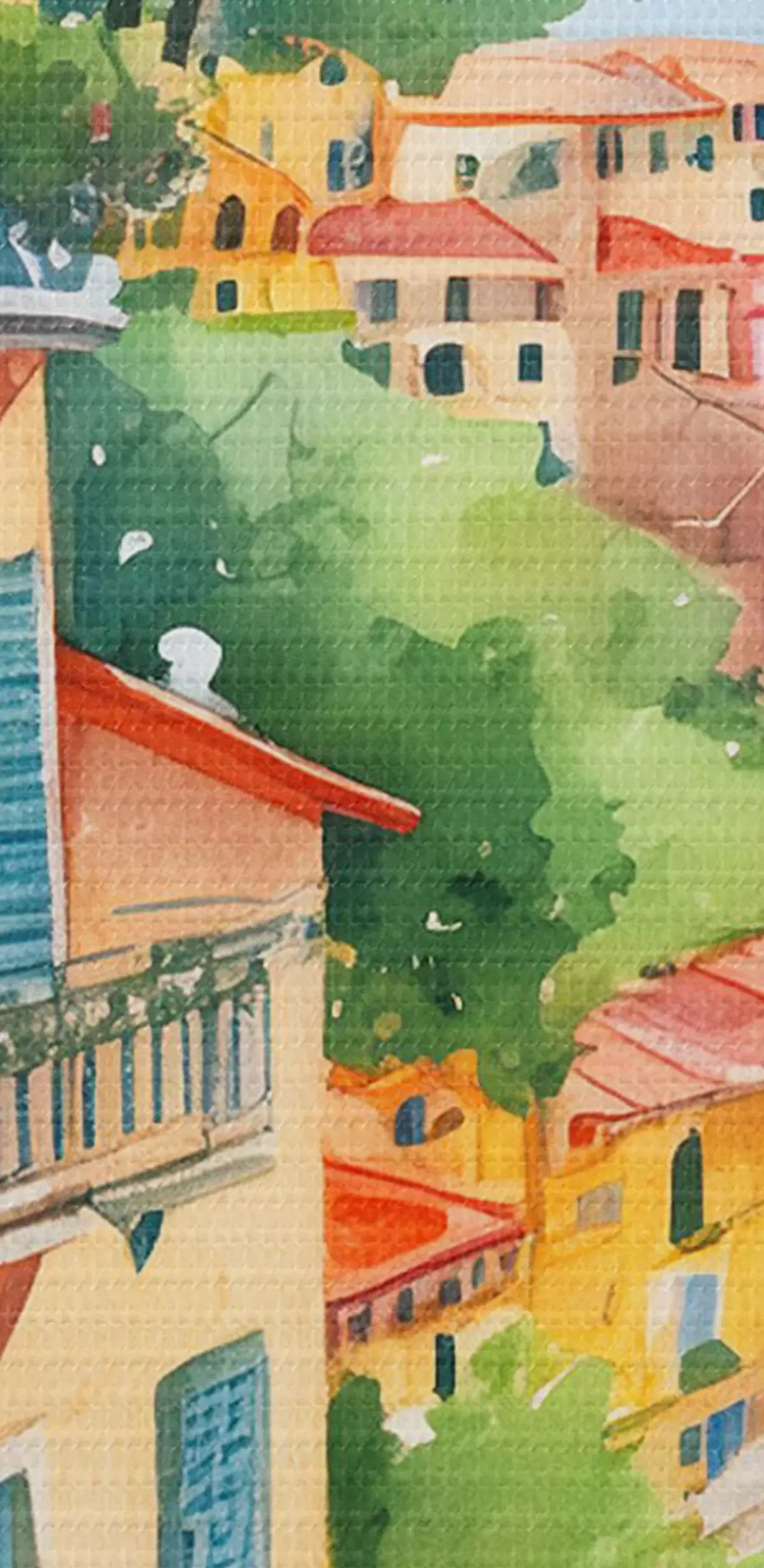 Fototapete Italienische Stadtarchitektur, Amalfiküste, Sommer, Aquarell, Zitronenbaum s38393