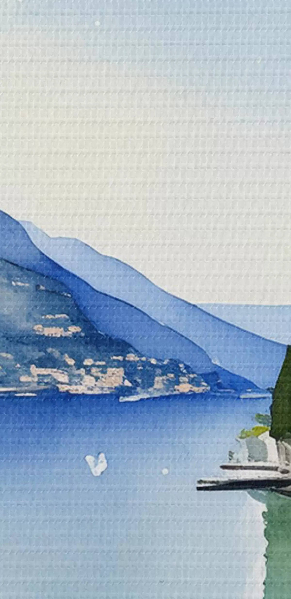 Gemälde Italienischer See, Sommer, Aquarell, Naturlandschaft, Zitronen, Stadtarchitektur Art. s38394