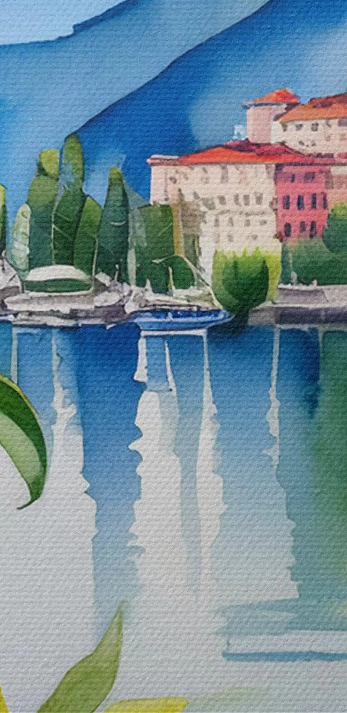Gemälde Comer See, Aquarell, Italien, Sommer, Berge, Zitronenbaum, Meer, Altstadt Art. s38398