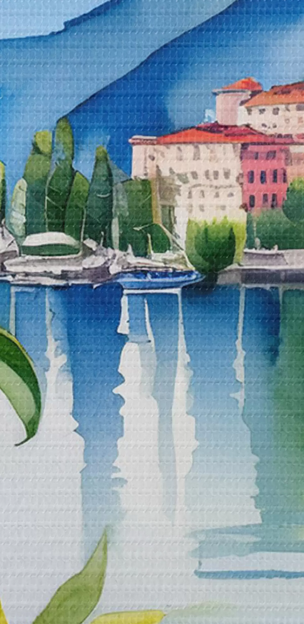 Fototapete Comer See, Aquarell, Italien, Sommer, Berge, Zitronenbaum, Meer, Altstadt s38398
