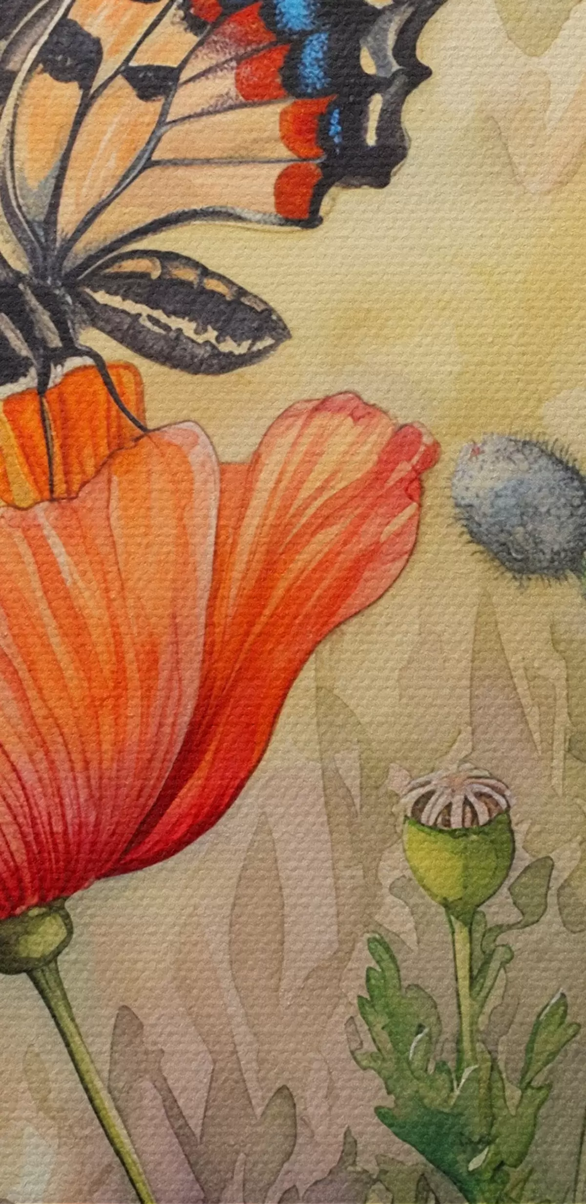 Gemälde Mohnfeld und Schmetterling Art. s38520