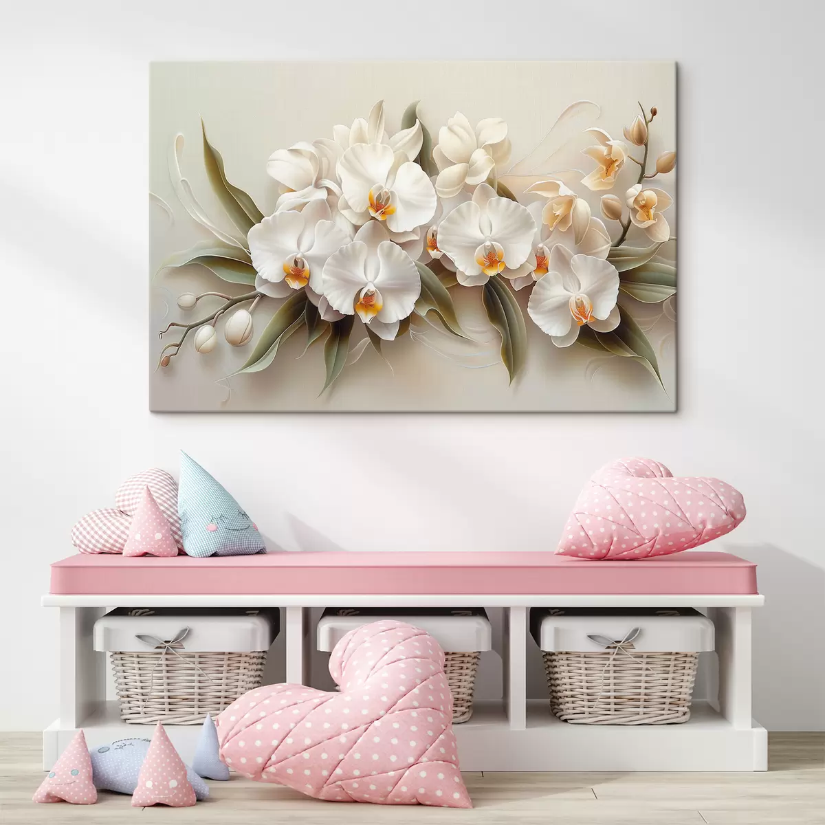 Drei Materialtypen stehen zur Verfügung: Economic Canvas - ein dichtes und haltbares Material für den Digitaldruck, identisch mit Malerleinwand, wasserfeste Oberfläche, realistische Wiedergabe von Details, mittelkörniges Material. Premium Canvas - die Textur ähnelt der einer Malerleinwand (verwobene kleine Fäden). Weiche, detaillierte Wiedergabe des Bildes auf einer matten Oberfläche. Eco-Premium - hochwertiges Gewebe aus 100% Baumwolle. Dank der natürlichen Baumwollfasern ist das Material langlebig und verschleißfest. Hervorragende Farbwiedergabe und Detailtreue.