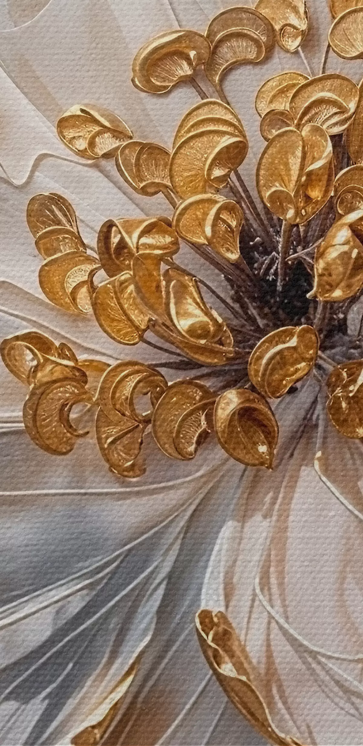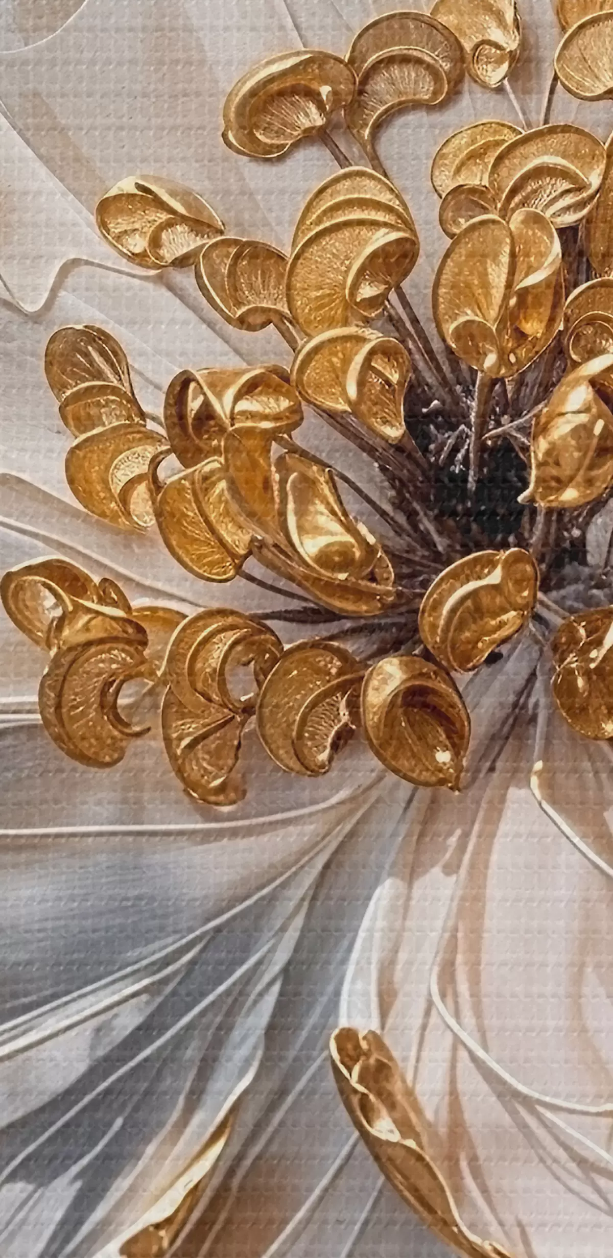 Fototapete Nahaufnahme einer großen weißen Blume mit gelben Staubgefäßen in der Mitte, künstlerische Dekoration in Öl gemalt s38755