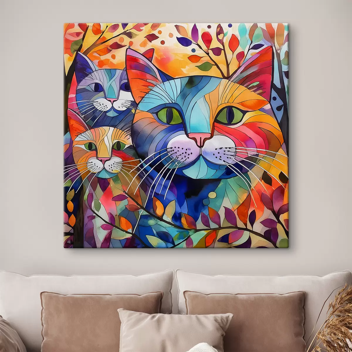 Gemälde Mehrfarbige Abstraktion mit Katzen Art. s38814