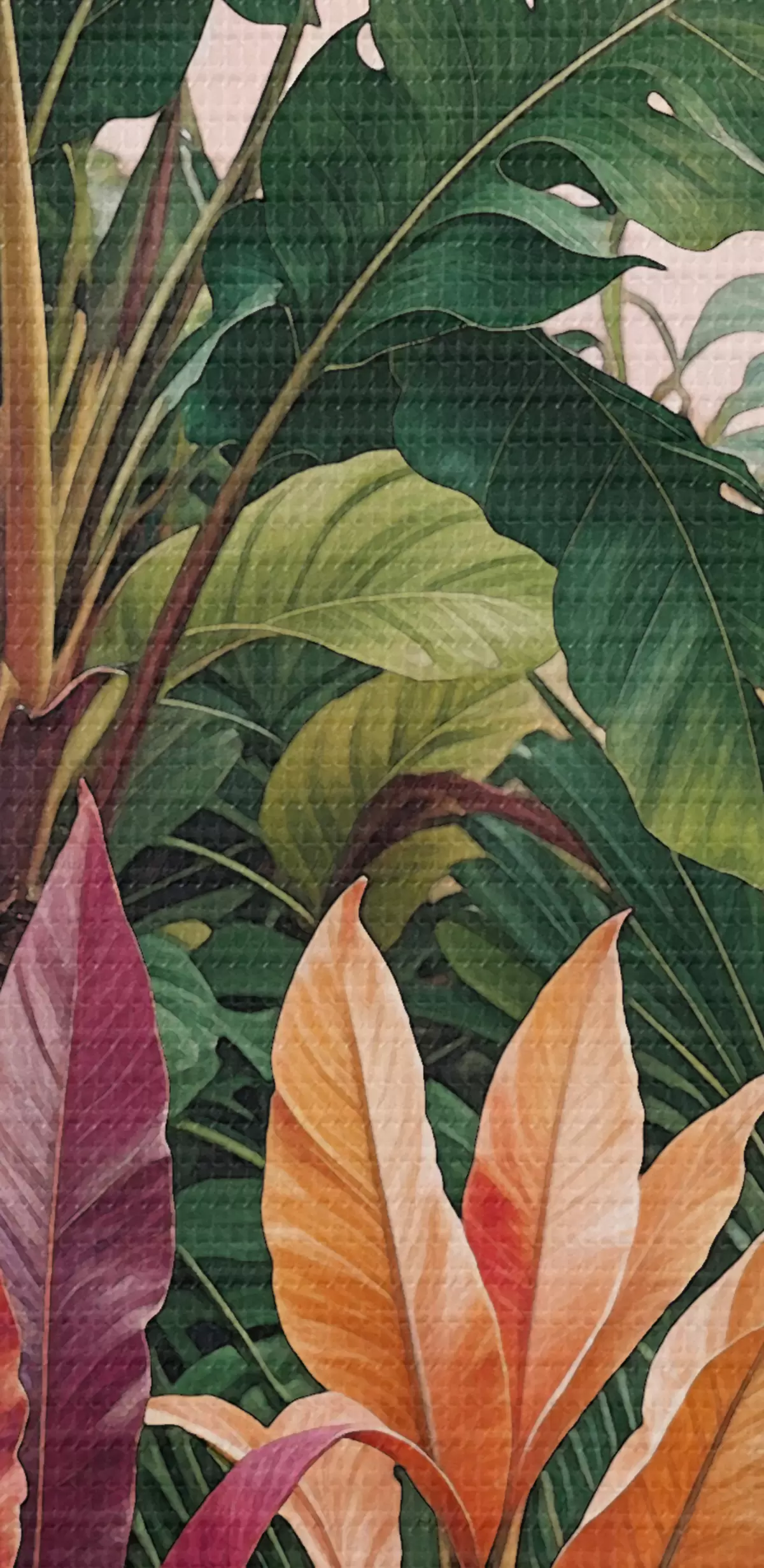 Fototapete Ein üppiger, tropischer Dschungel mit leuchtend grünen Blättern, Palmwedeln und bunten Blumen s38817
