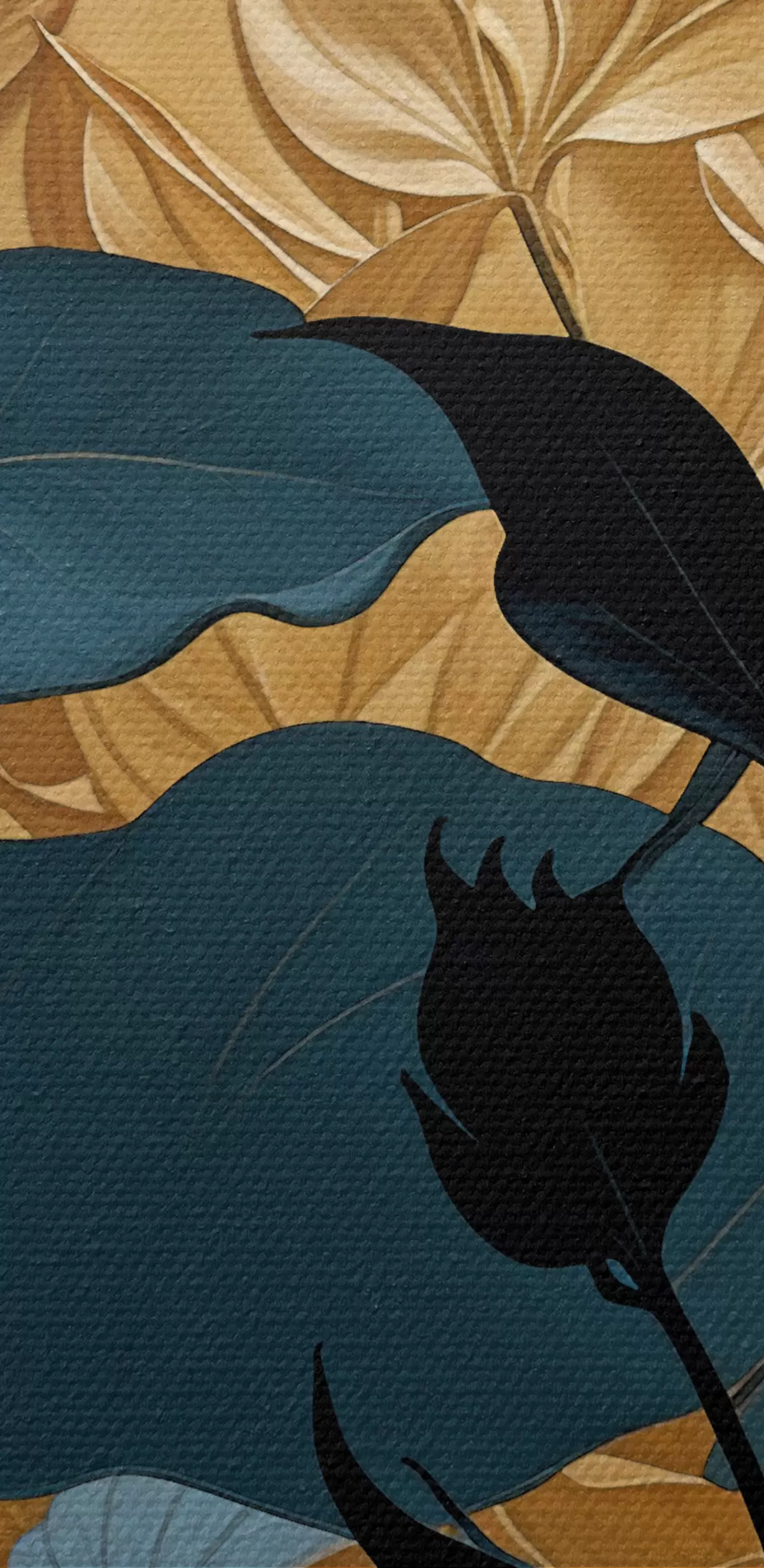 Gemälde Abstrakte florale Komposition mit großen Blättern und dunklen Silhouetten Art. s38822