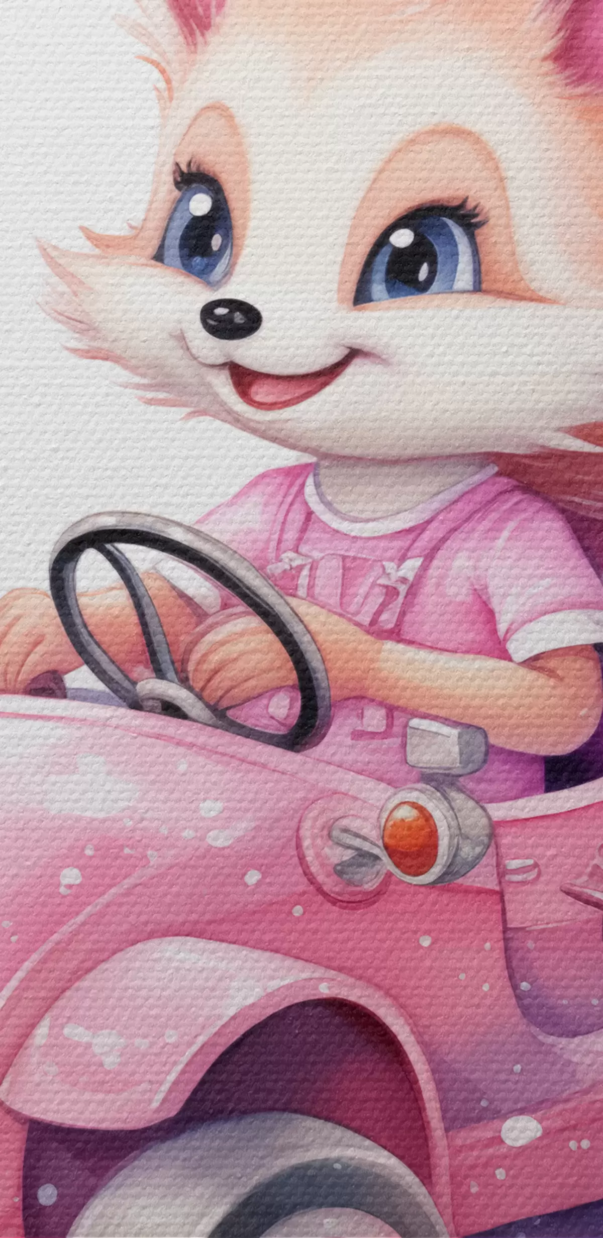 Gemälde Kleiner Fuchs fährt ein rosa Auto Aquarell-Illustration für Kinder Art. s38943