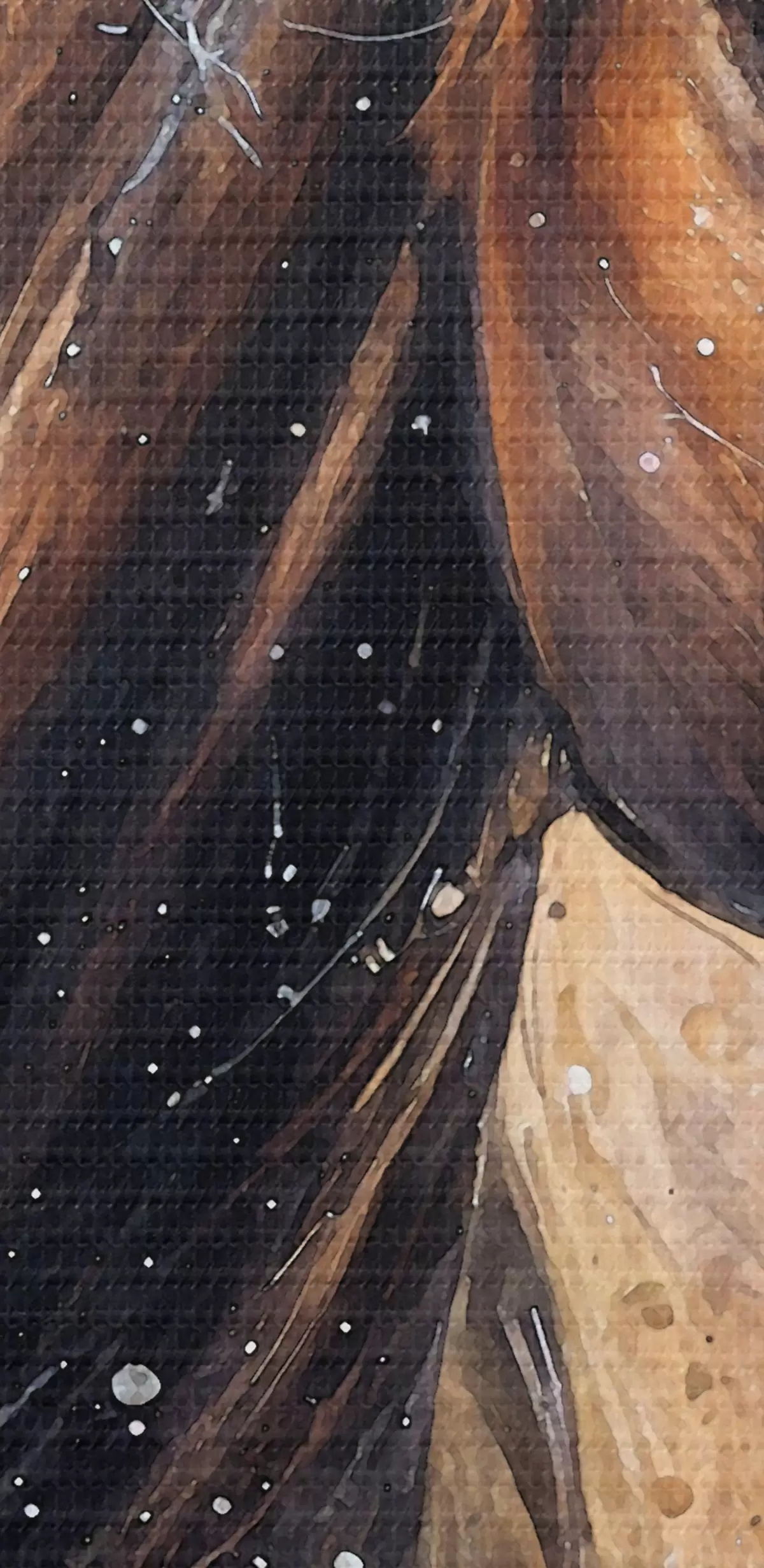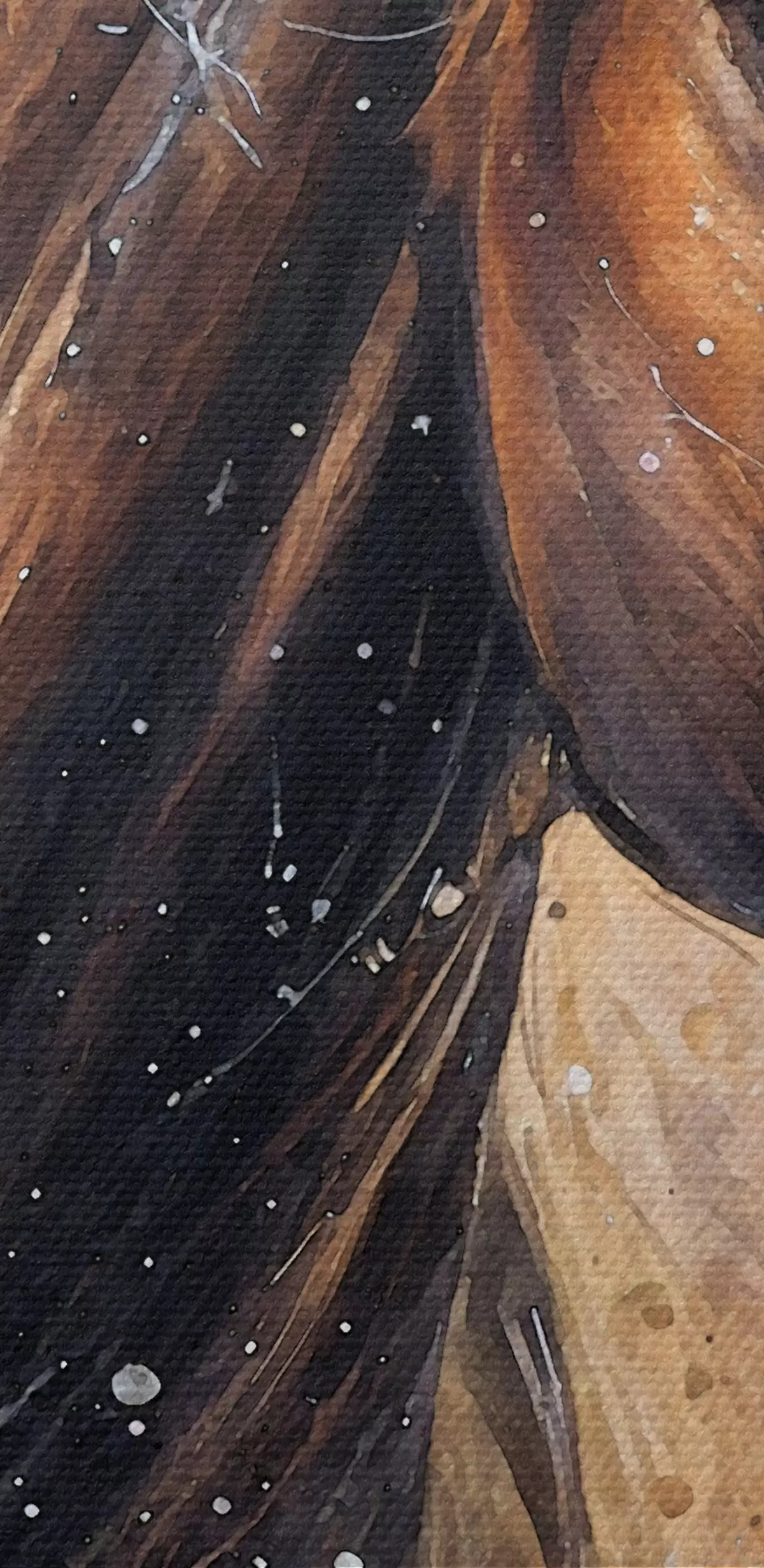 Fototapete Gemälde eines braunen Pferdes mit wallender Mähne vor einem strukturierten Hintergrund mit Farbspritzern  s38959