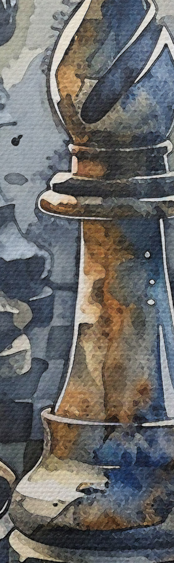 Fototapete Aquarellmalerei, Nahaufnahme eines Schachspiels aus Metall oder Stein, mit detaillierten Designs und Texturen s38960