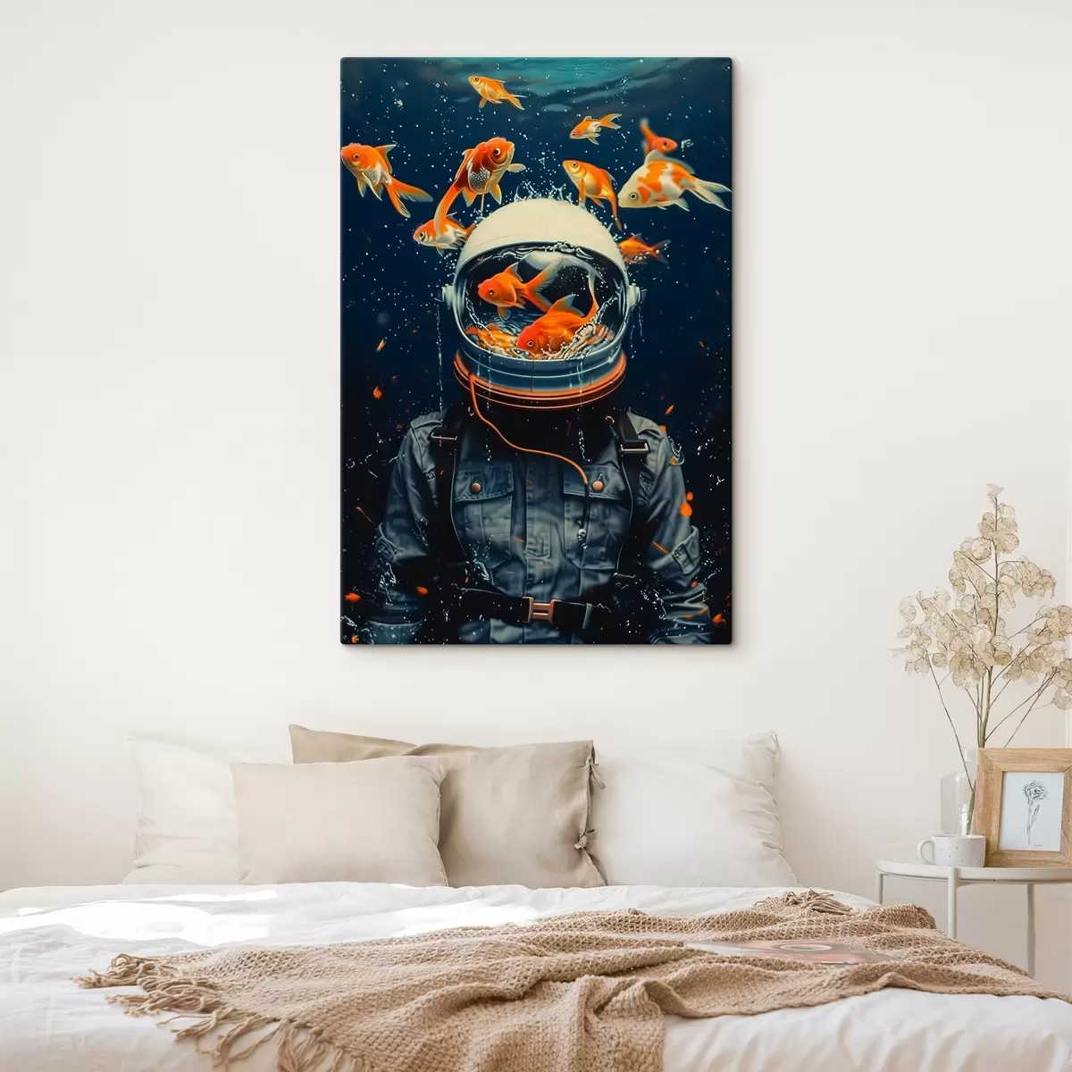 Gemälde Astronaut schwimmt mit verspielten Fischen Art. s39041