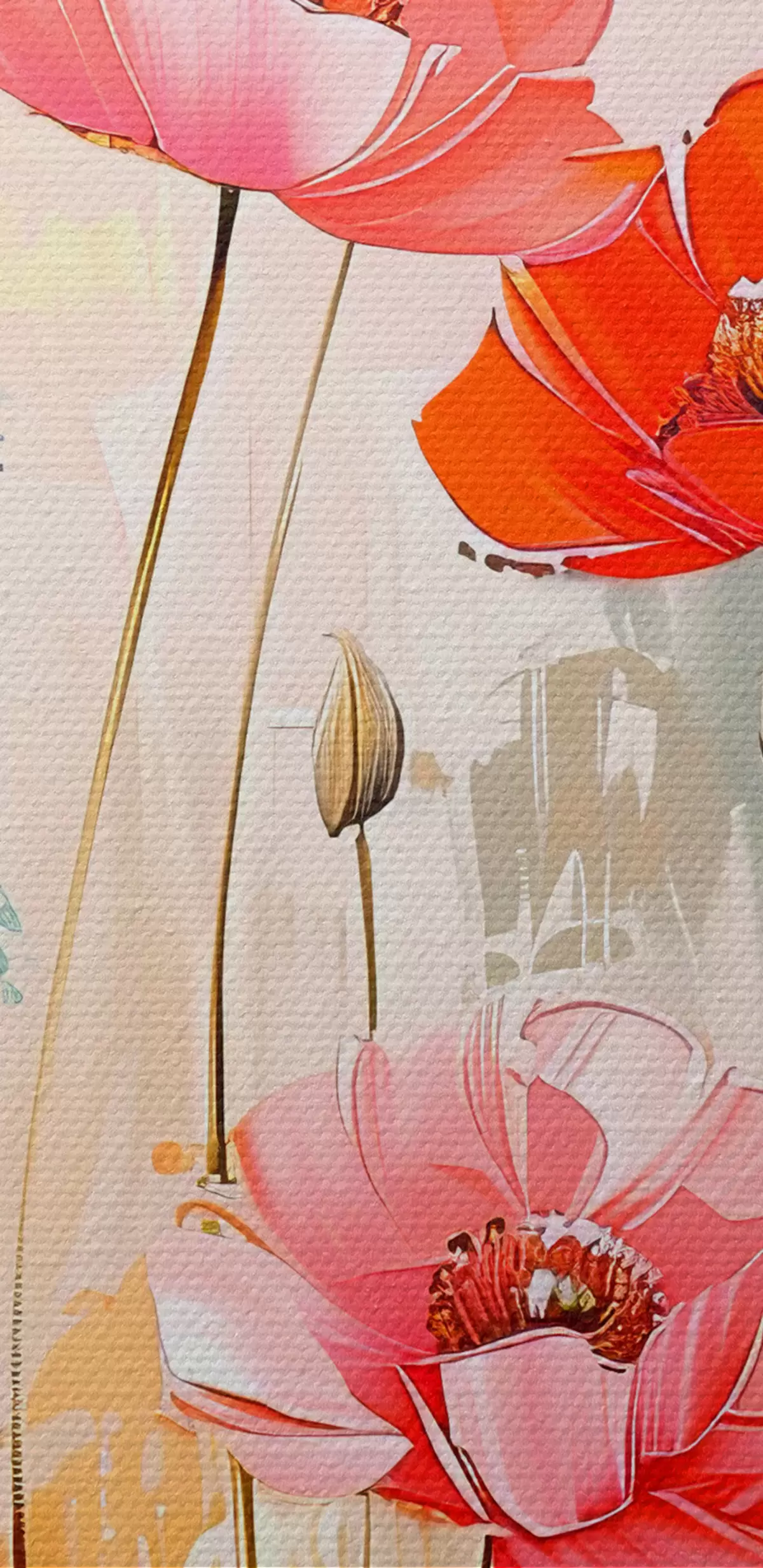 Drei Materialtypen stehen zur Verfügung: Economic Canvas - ein dichtes und haltbares Material für den Digitaldruck, identisch mit Malerleinwand, wasserfeste Oberfläche, realistische Wiedergabe von Details, mittelkörniges Material. Premium Canvas - die Textur ähnelt der einer Malerleinwand (verwobene kleine Fäden). Weiche, detaillierte Wiedergabe des Bildes auf einer matten Oberfläche. Eco-Premium - hochwertiges Gewebe aus 100% Baumwolle. Dank der natürlichen Baumwollfasern ist das Material langlebig und verschleißfest. Hervorragende Farbwiedergabe und Detailtreue.