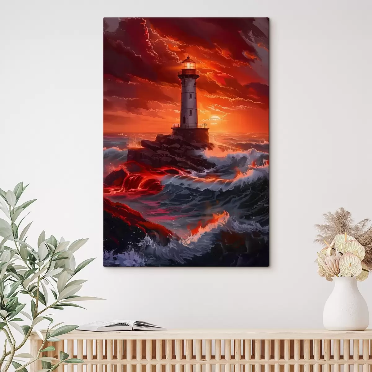 Gemälde Ein Leuchtfeuer, das durch stürmische Meere führt Art. s39050