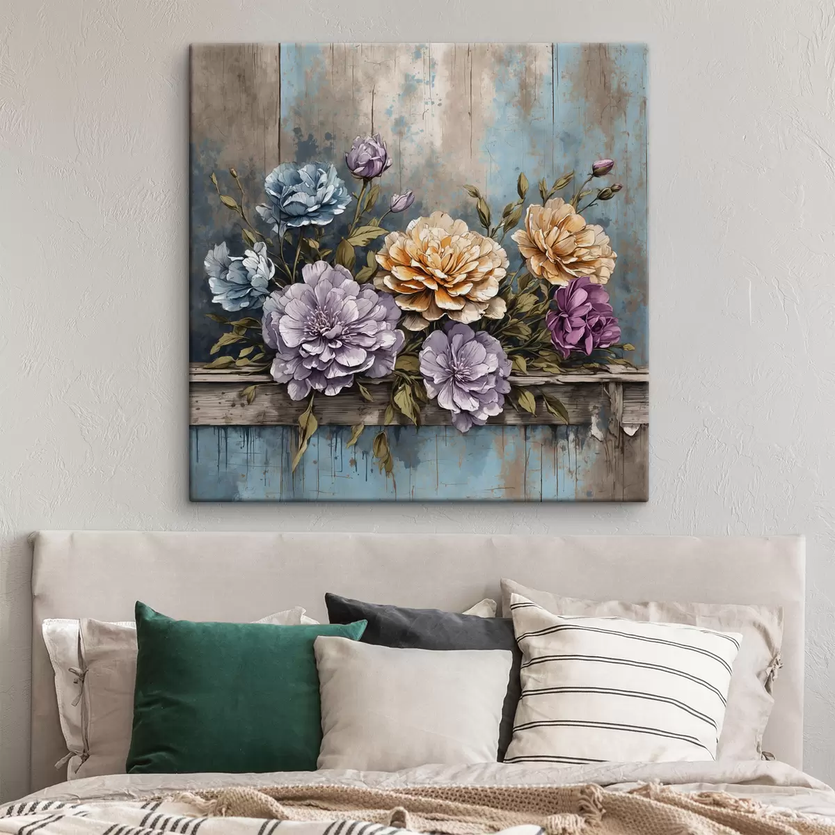 Gemälde Blumen und Blätter auf altem Holzregal Art. s39169