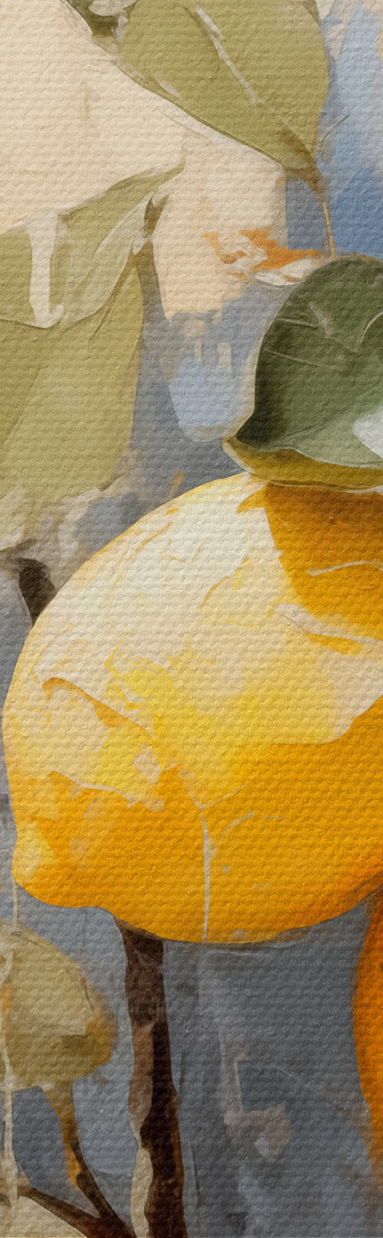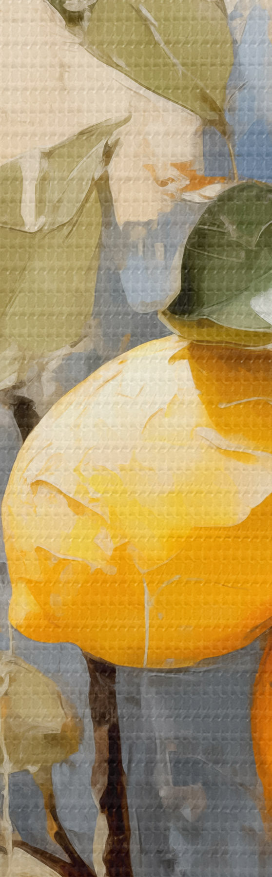 Fototapete Zweig mit reifen Zitronen Ölgemälde abstrakte Kunst, gelb, blau und grün s39186