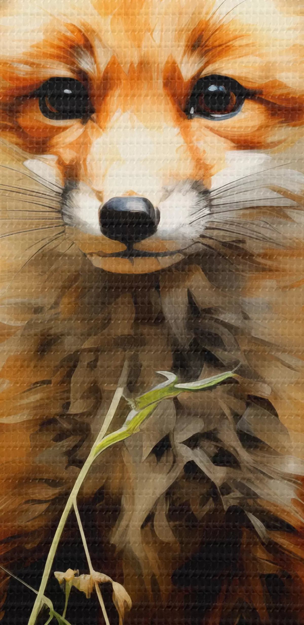 Fototapete Roter Fuchs sitzt im trockenen Gras auf einem grünen Hintergrund Ölgemälde s39191