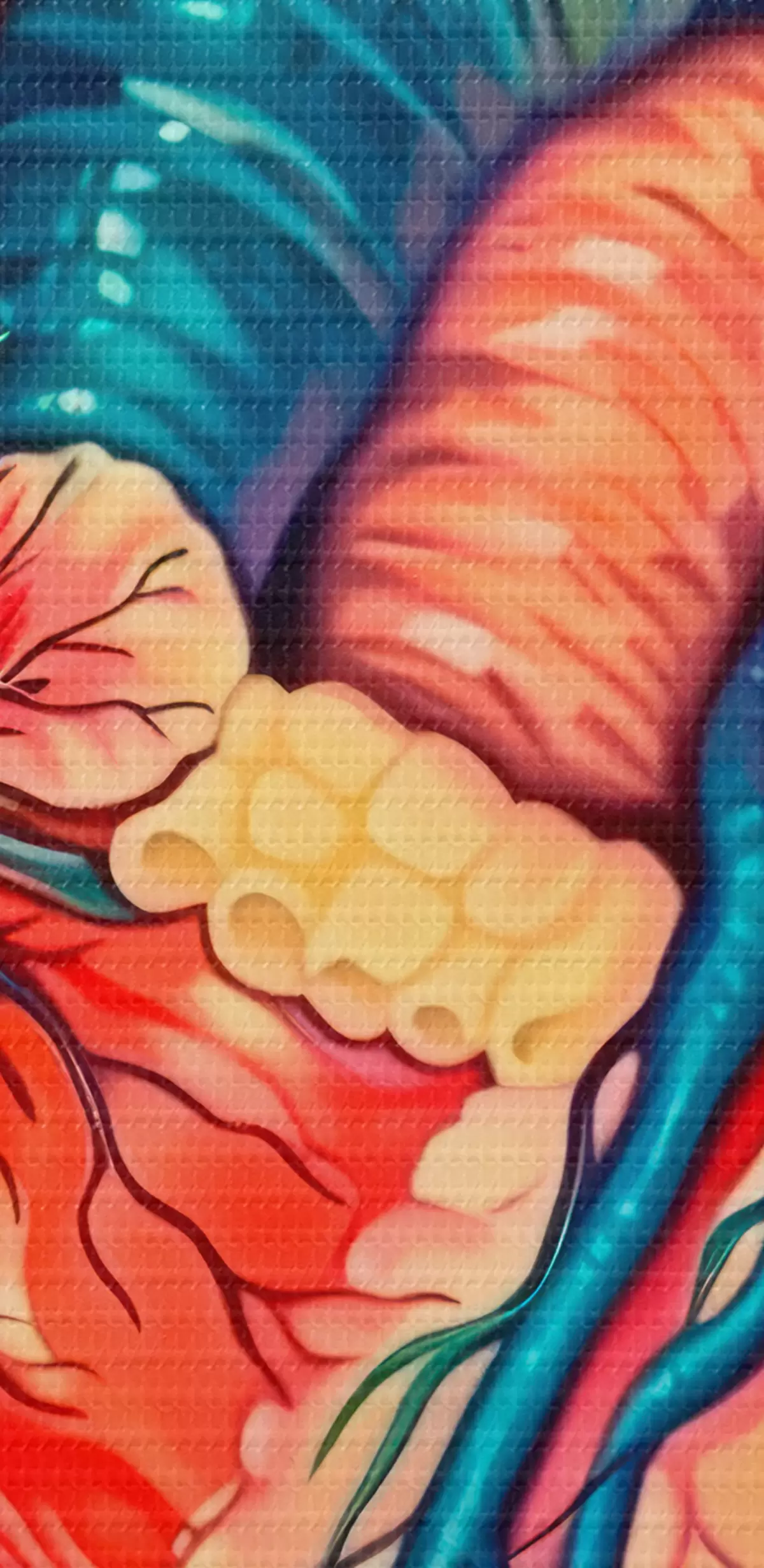 Um die Leinwand auf Keilrahmen zu spannen, ohne das Bild zu beschädigen, verwenden wir ein gespiegeltes Bild.