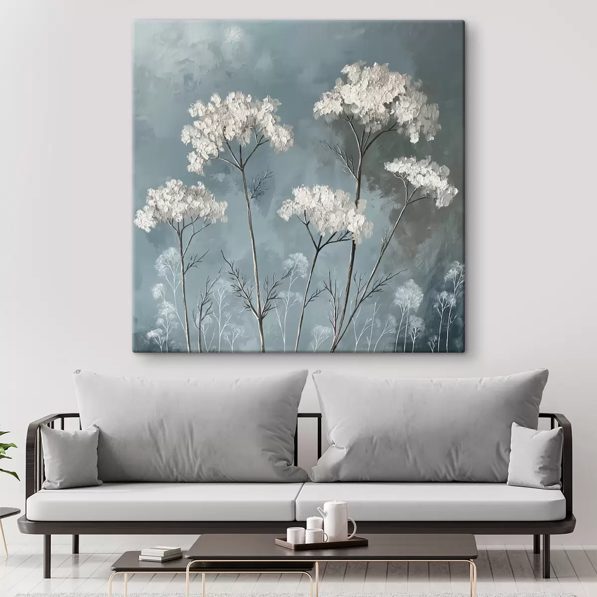 Gemälde Ölgemälde von zarten weißen Blumen auf blauem Hintergrund Art. s39325