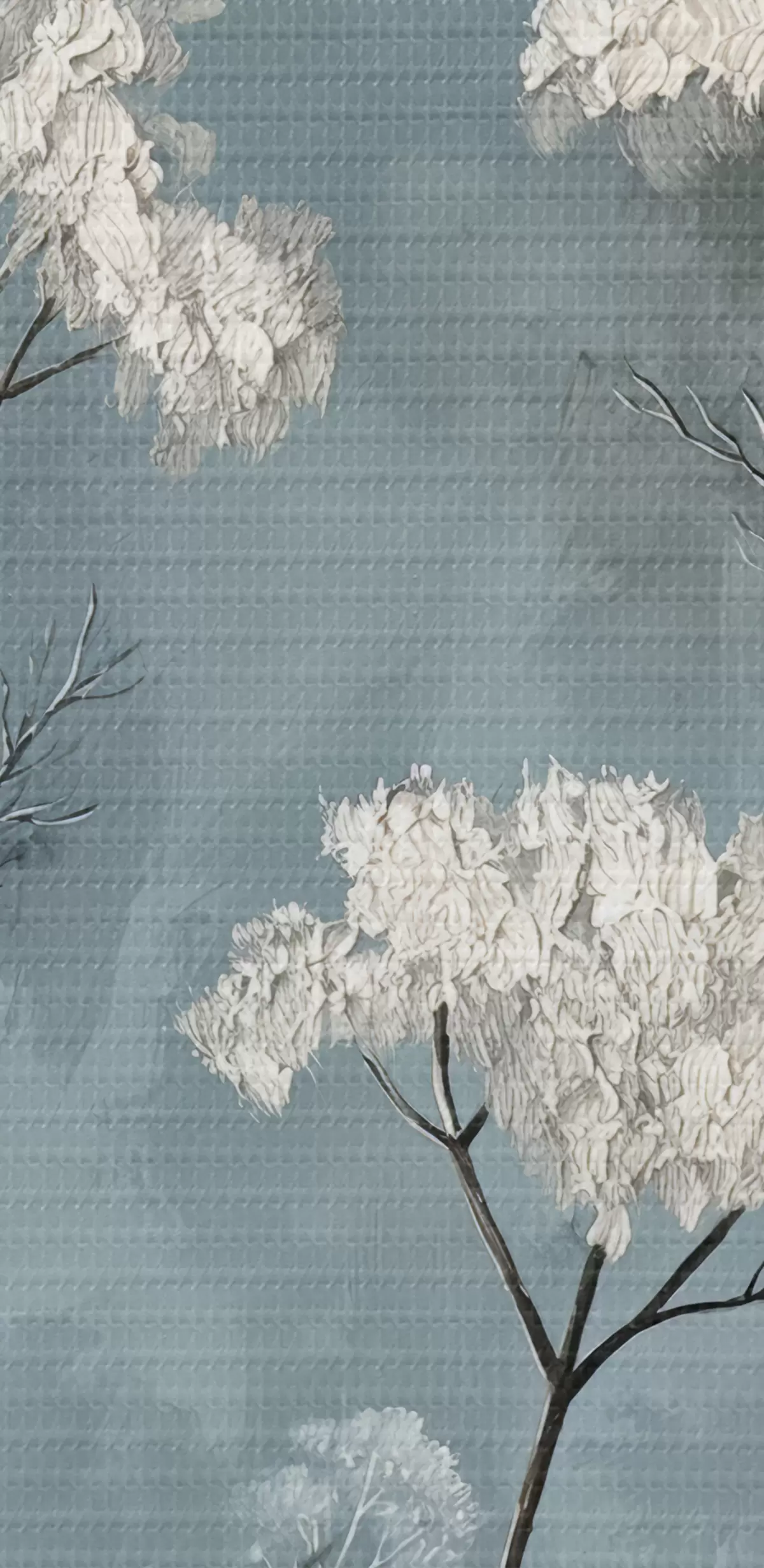 Fototapete Ölgemälde von zarten weißen Blumen auf blauem Hintergrund s39325