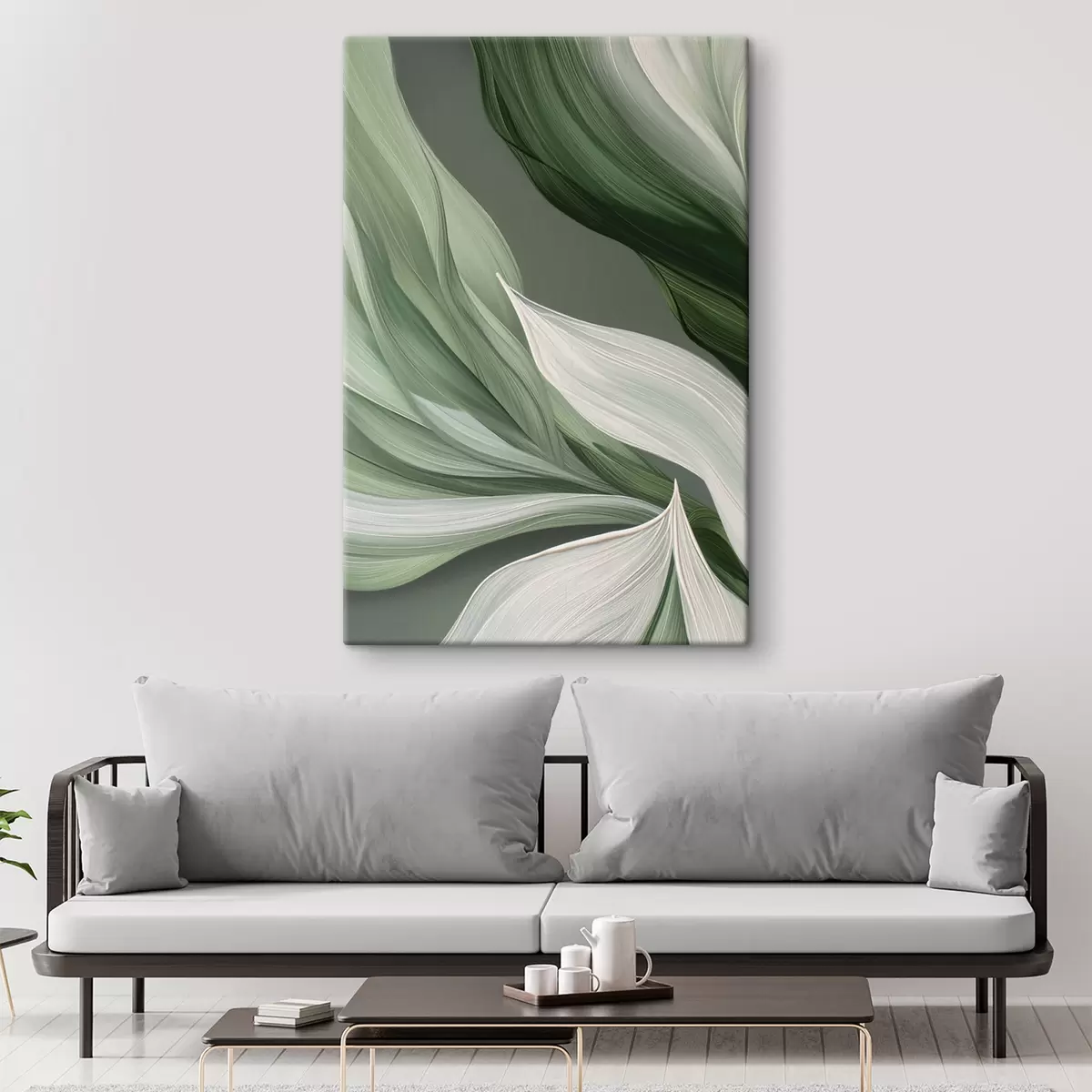 Gemälde voluminöser abstrakter Schleier in Weiß- und Grüntönen Art. s39327