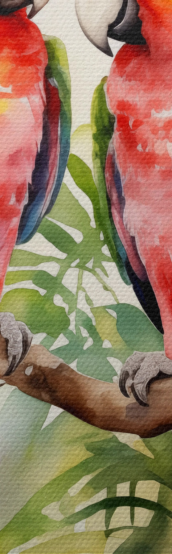 Fototapete Zwei helle Ara Papageien sitzen auf einem Ast Aquarell s39333