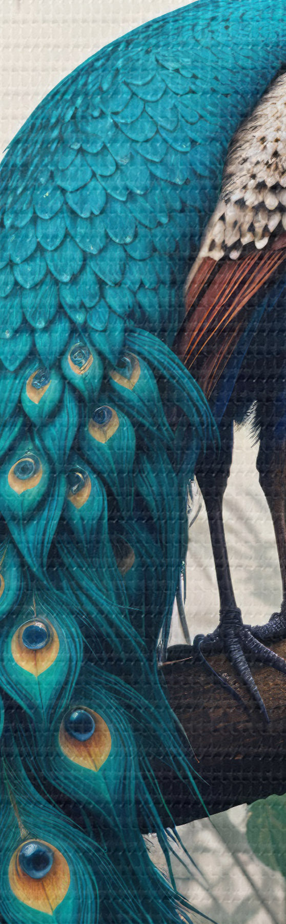 Fototapete Ein leuchtend blauer Pfau, der auf einem Ast in einem üppigen tropischen Wald thront  s39401