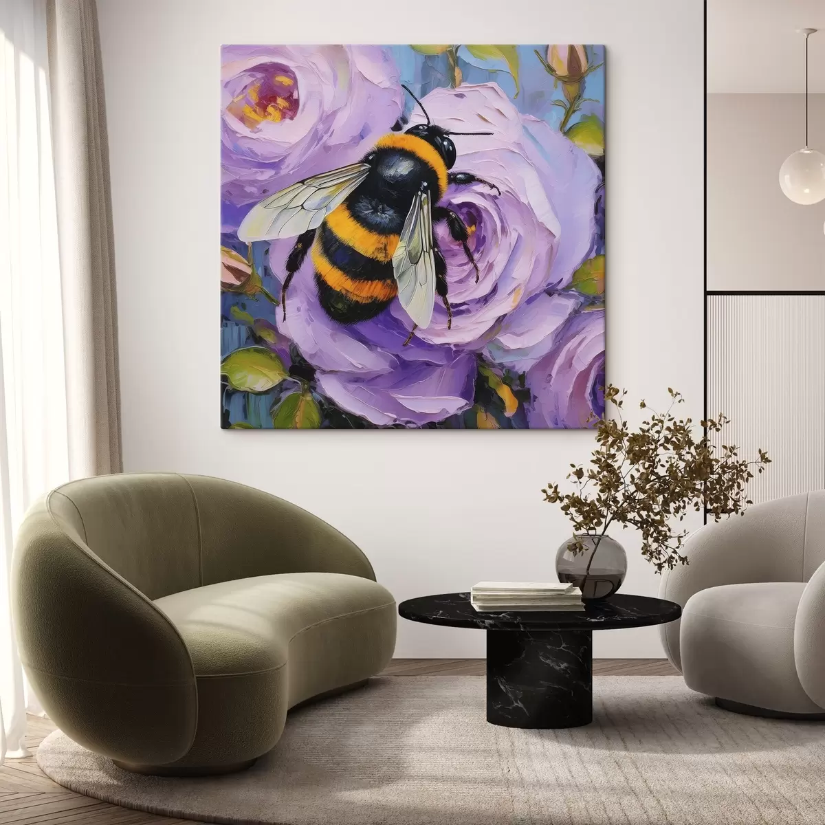 Gemälde Biene auf den rosa Pfingstrosen, Sommerblumen, Ölgemälde, lebendige Pinselstriche Art. s39410