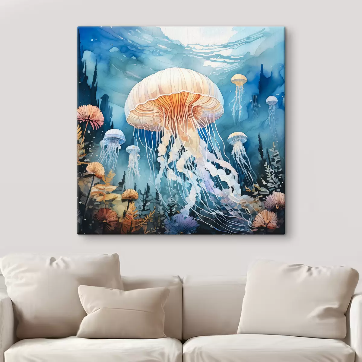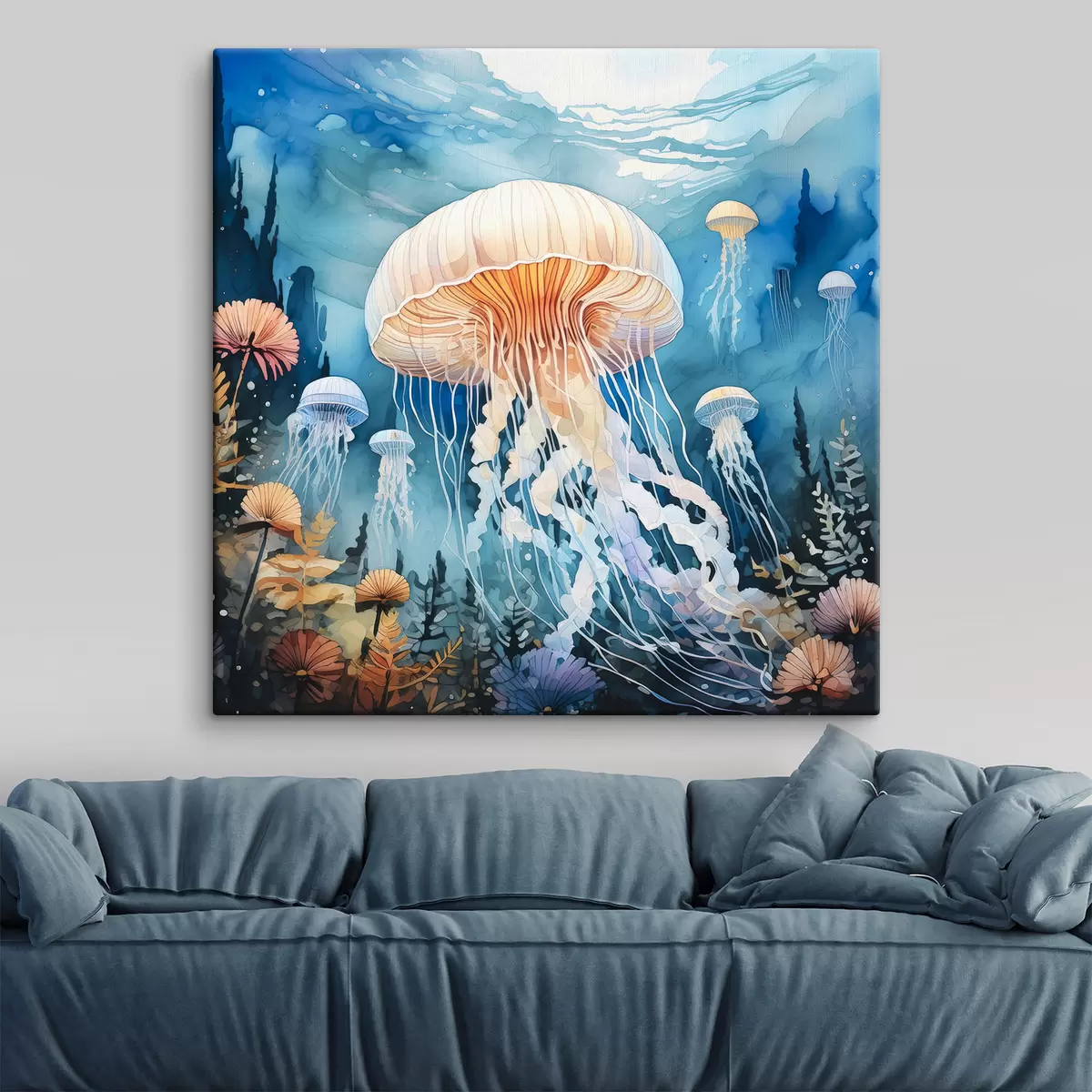 Fototapete Unterwasserleben, Quallen, Aquarell, Korallenriffe, Aquamarinfarben s39428