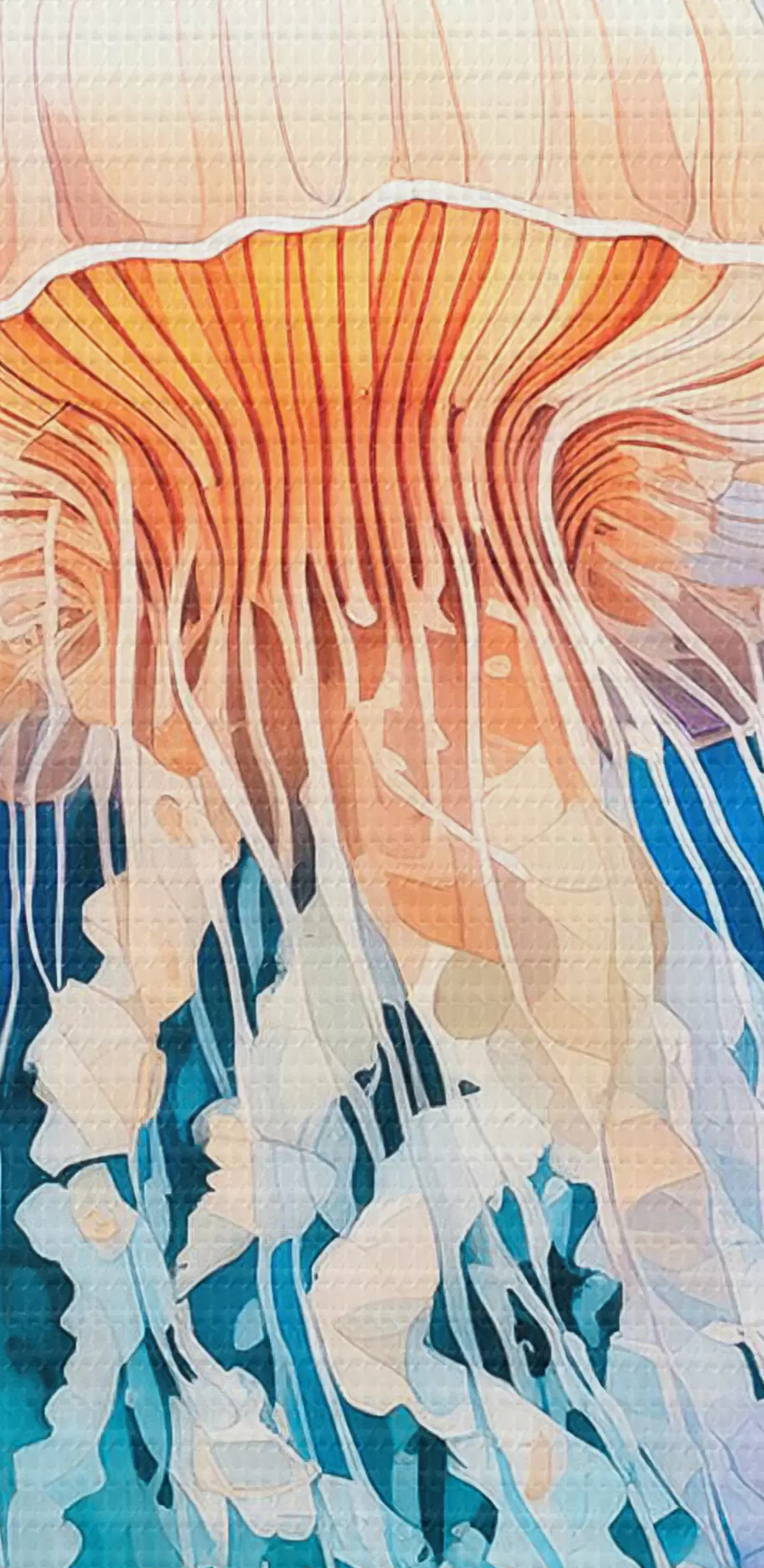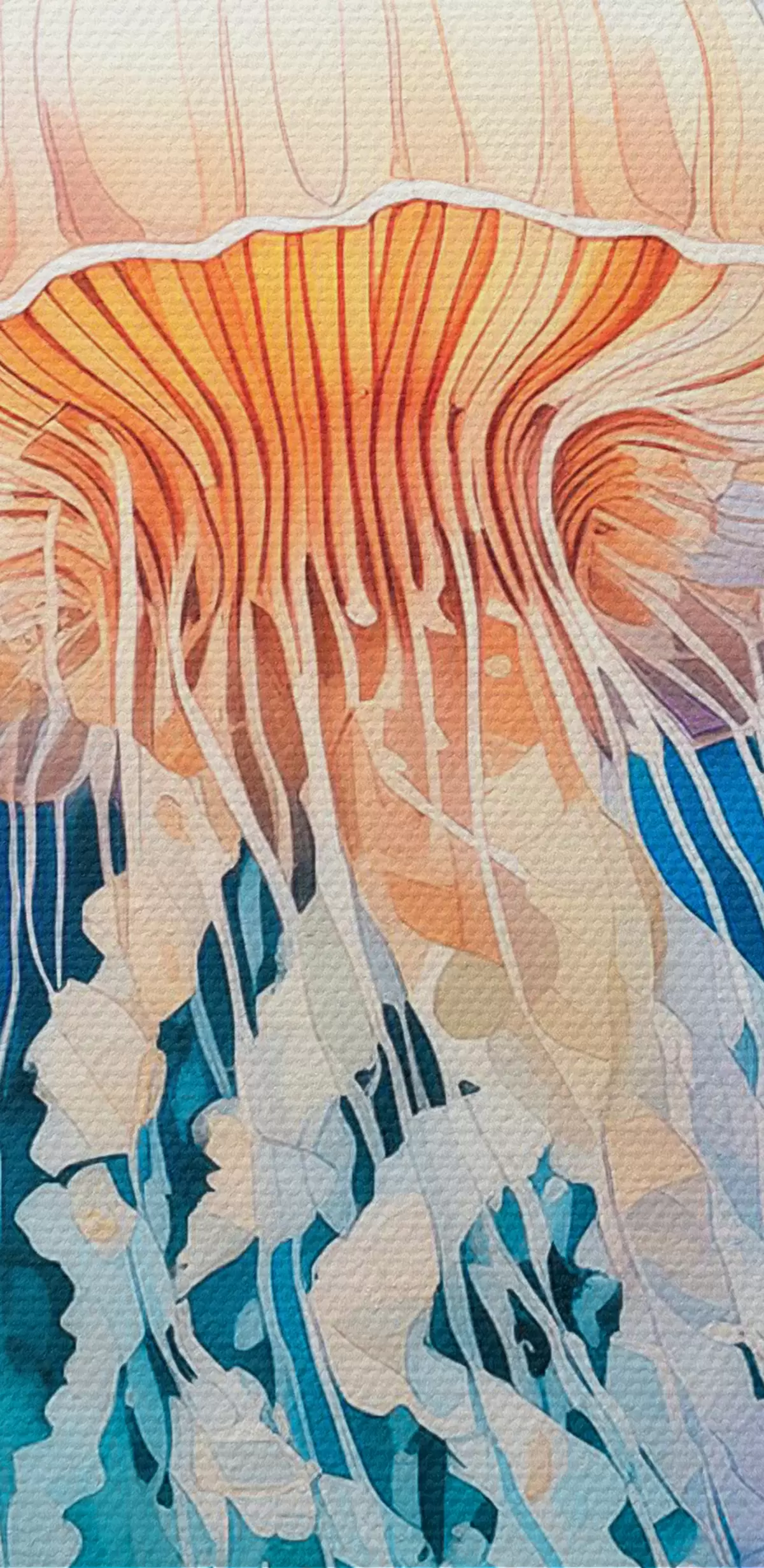 Gemälde Unterwasserleben, Quallen, Aquarell, Korallenriffe, Aquamarinfarben Art. s39428