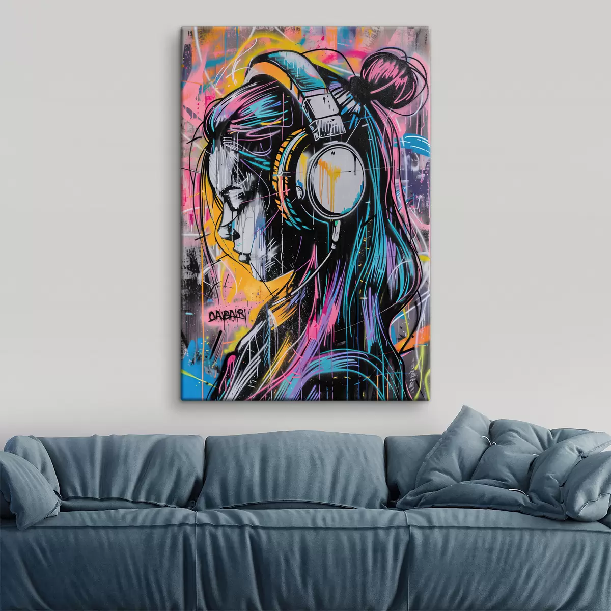 Gemälde Frau mit Kopfhörern im Graffiti-Stil Art. s39443