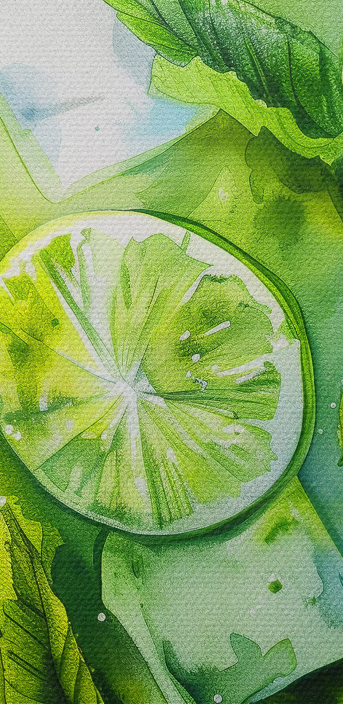 Gemälde Aquarell Sommercocktail, Mojito, Limette und Minze, Blumen, grüne Farben Art. s39712
