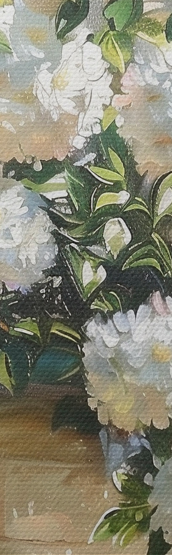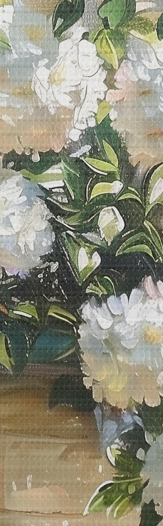 Gemälde Weiße Hortensien in der Vase, Sonnenlicht im Fenster, Ölgemälde Art. s39779