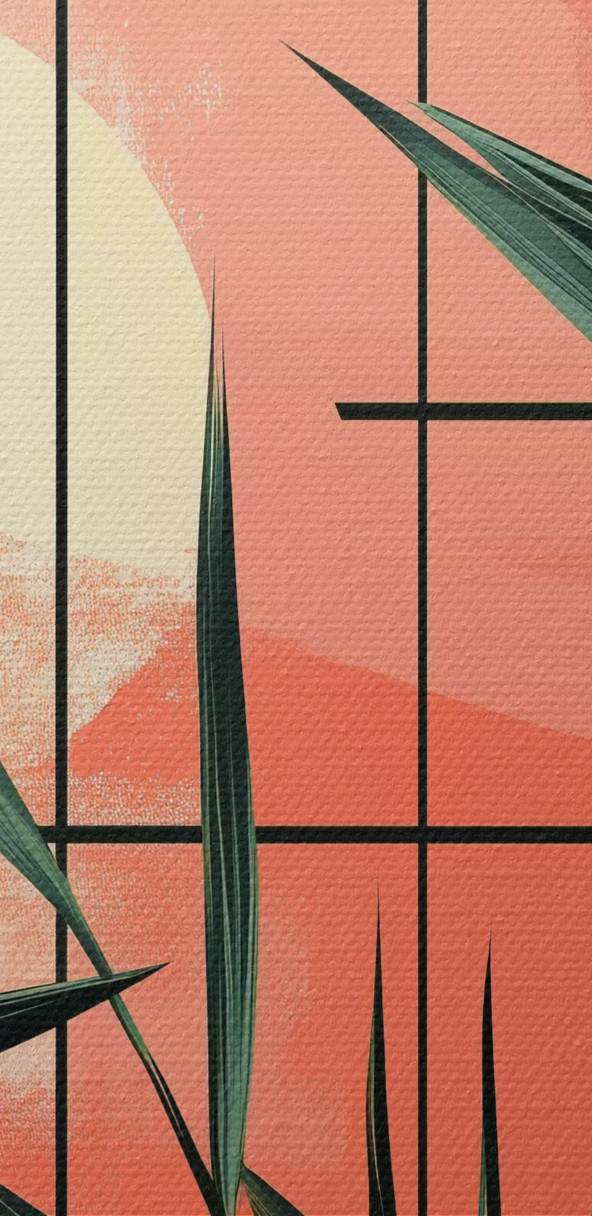 Gemälde Abstrakt mit Bambus und Sonne Art. s39898